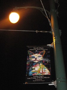 The Main Street Trolley Tour/Art Walk happens the last Friday night of each month. I’ve been wanting to go for over a year now, but either forgot about it or had other plans. Main Street was hoppin’! We checked out a couple galleries and stores, Nicki got a glass of wine, and took a tour of some new condos that were rockin’ cool.