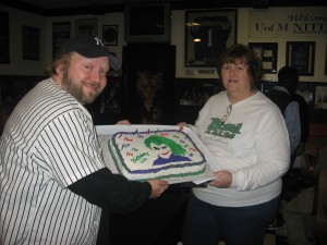 Then last night at the monthly MSCA dinner meeting Jane and Ronnie showed up with a cake and a big ol’ birthday bag of goodies.