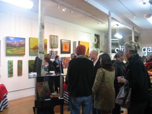 Friday night Nicki and I attended the First Annual Broad Avenue Holiday Art Walk. (That’s a George Hunt original behind us.)