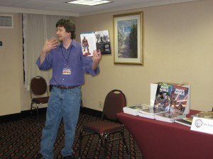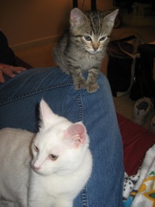 Our recently adopted kitties Zayne and Jarael were recently mentioned on Star Wars: Knights of the Old Republic author John Jackson Miller’s webiste “Faraway Press”. JJM is a former Memphian and is a comics/writer guest each year at Midsouthcon. He’s written for things like the Comics Buyer’s Guide magazine, comics (Star Wars, Iron Man, Indiana Jones), role playing games, and does a web comic called Sword & Sarcasm. If you get the chance to catch one of his panels do, or if you see him running around with his short box of comics at a con stop and pick up a few issues from him. Be sure to tell him Lin and Nicki sent you!