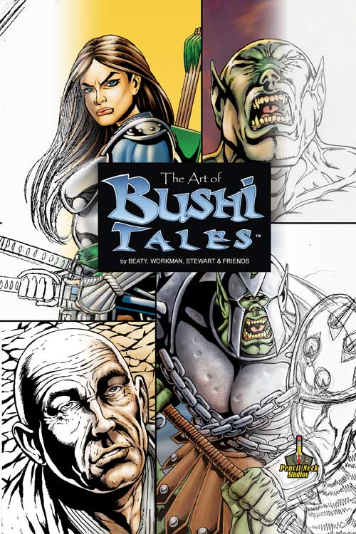 Dave Beaty, Lin Workman, and Micah Stewart take you behind the scenes in the Art of Bushi Tales. See the scripted page come alive from pencil sketches to painted art. Includes a special guest artist gallery featuring art by Bret Blevins, Scott Clark, Greg Cravens, Andrew Charipar, Harold Jennett, Martheus Antone Wade, and more! A must have for art lovers and Bushi Tales fans.
