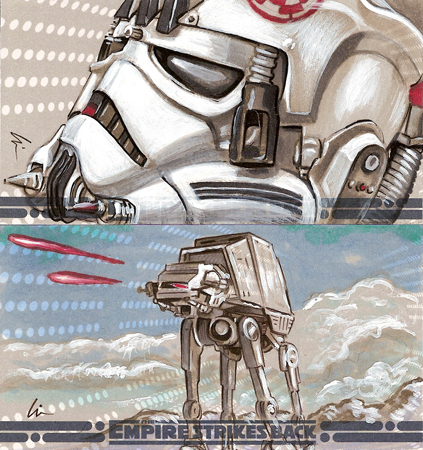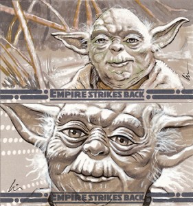 I’m doing sketch cards for Topps’ new The Empire Stikes Back 3D widescreen card set which celebrates the 30th anniversary of TESB’s release. The cards ship in May and you can find out more at Topps.