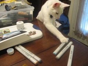 And Nicki’s kitty Jarael has become a klepto-kitty and she steals my markers when I get up to take a break!