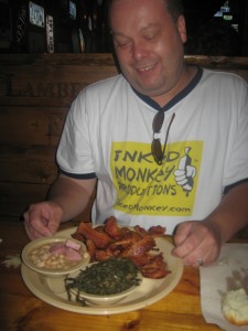 Timmy happy! He had the hog jowls- or as I like to call them, “bacon on steroids”!