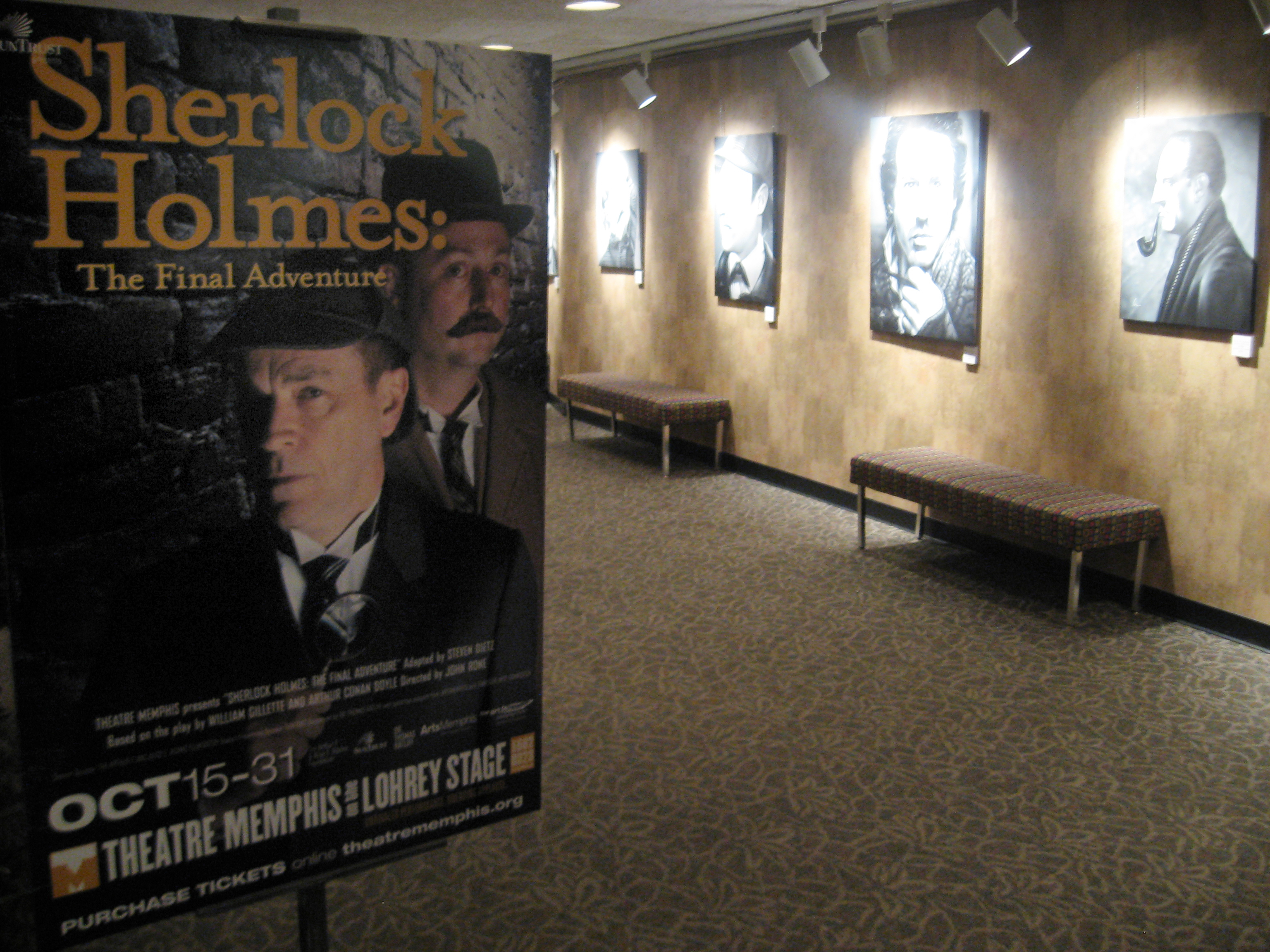 The show is on display in the Theatre Memphis lobby areas and runs in tandem with their production of “Sherlock Holmes: The Final Adventure“.
