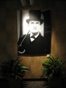 I have Basil, Peter Cushing, Robert Downey Jr., Jeremy Brett, Michael Cain, and a few surprises including James Bragington– a studio employee who was promoted to actor for the first full length British Holmes feature A Study in Scarlet because he looked like Holmes.