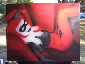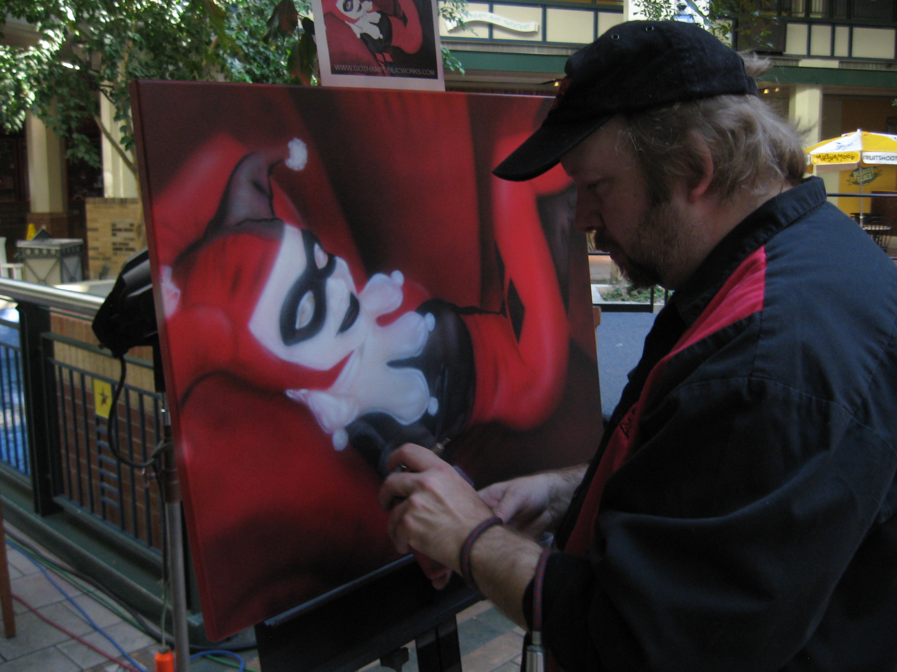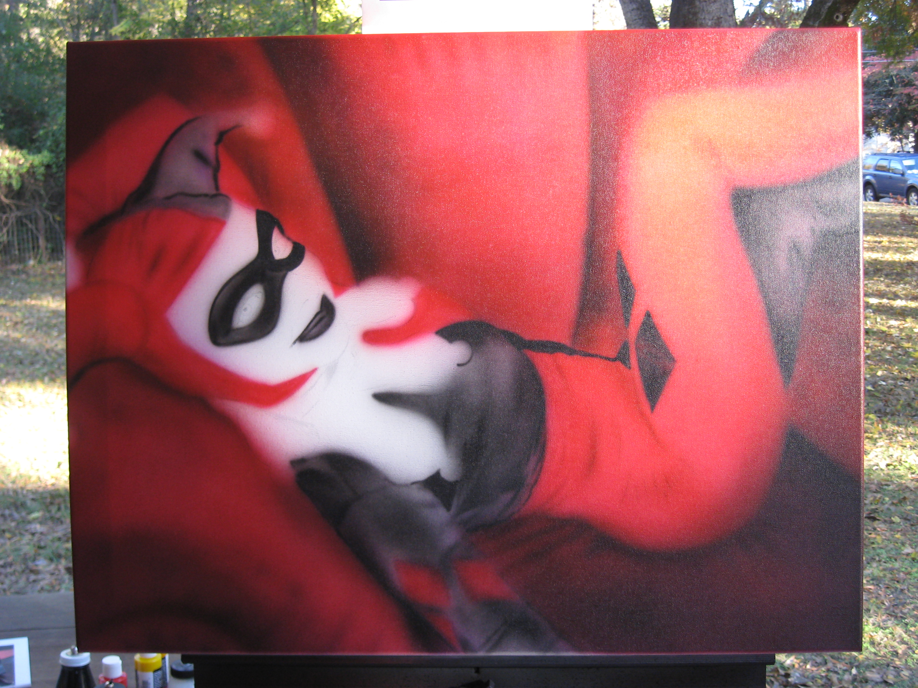 I worked on the GPW Harley Quinn painting I started on at the art show reception this past Sunday.