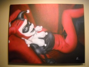 My recent painting of GPW’s Harley Quinn (as seen on Ch3’s Live@9) is on display with some fellow DAC members’ art at Southern Thunder Harley Davidson in Southaven, MS.