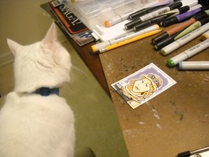 Jarael is debating on whether to steal my markers or put the card up on ebay, which is where you can find many sketchcards.