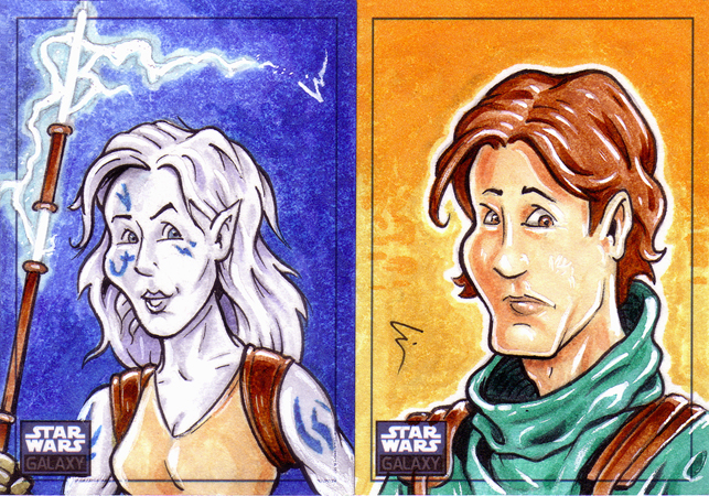 Speaking of Jarael, here’s a card I did of her namesake and another of Zayne– who we named our first two kitties after from JJM‘s KotOR comics.