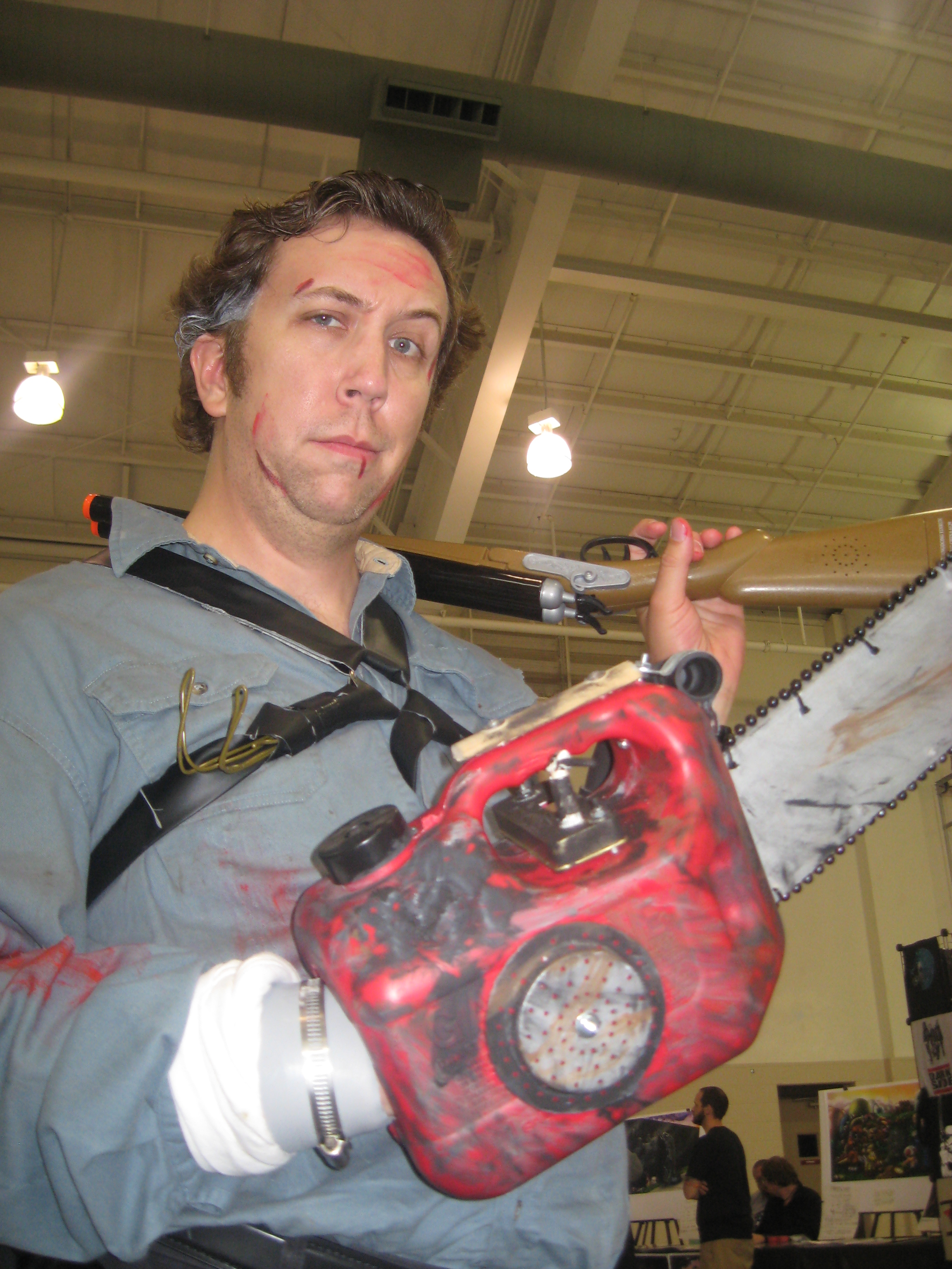 Some of those familiar faces belonged to the Gleckler family- that’s dad John there as Ash with his “boom stick” from S-Mart.