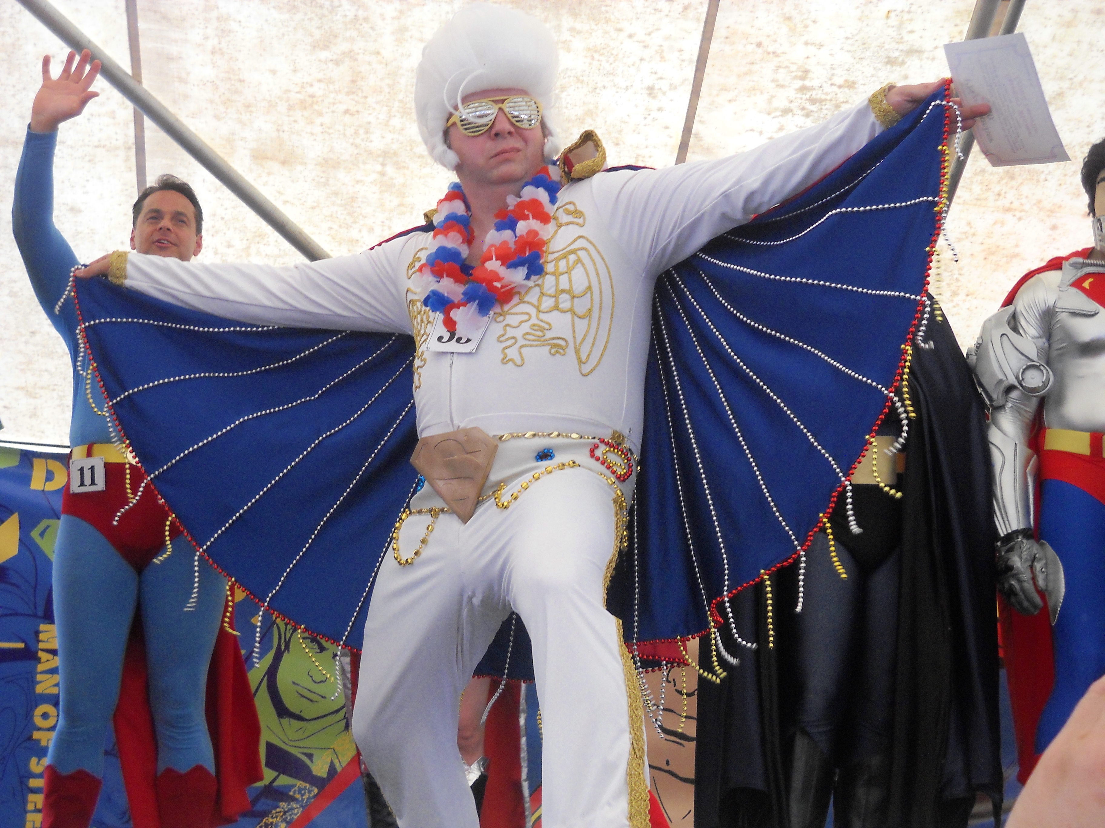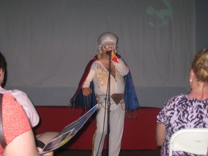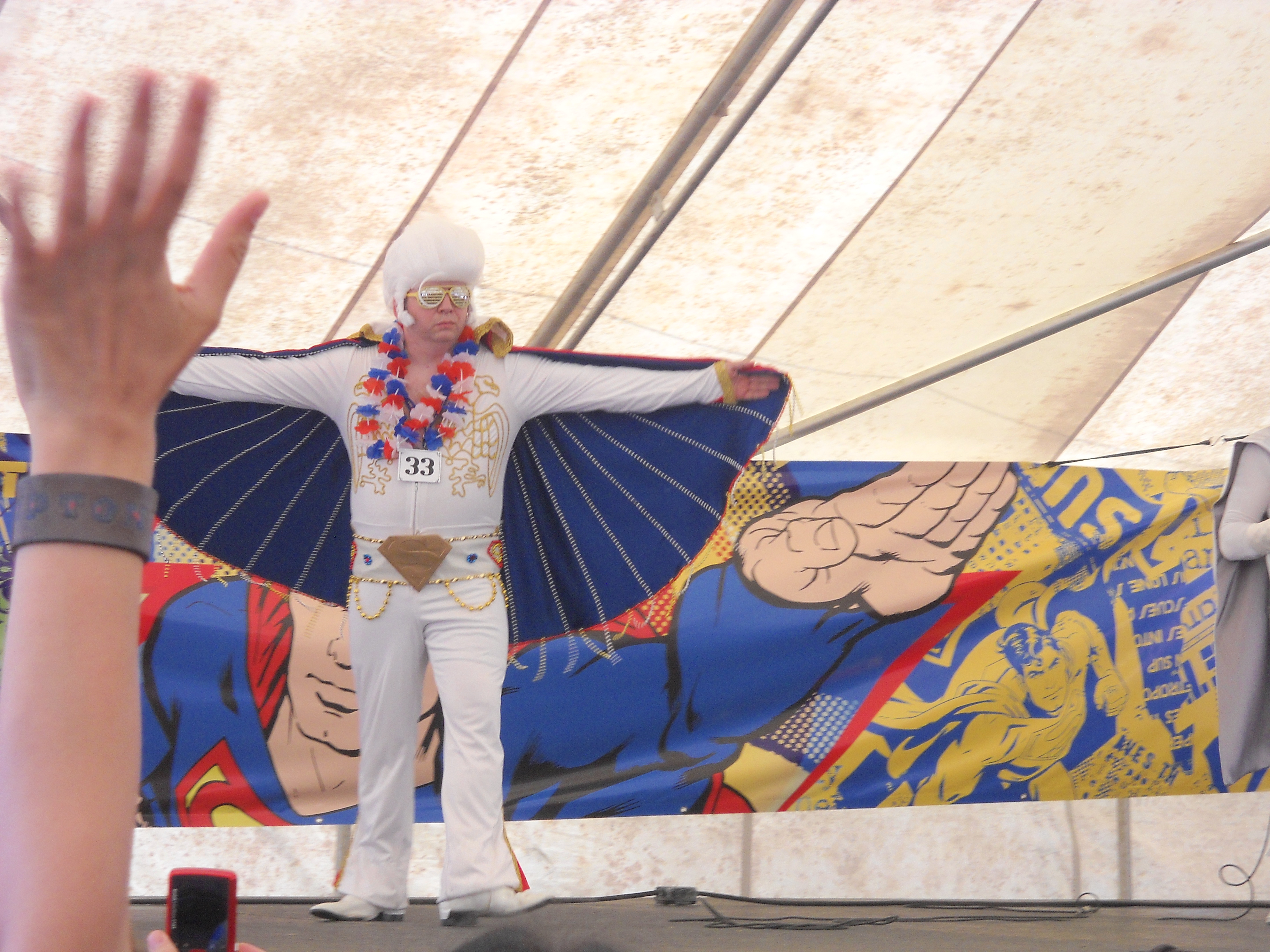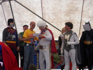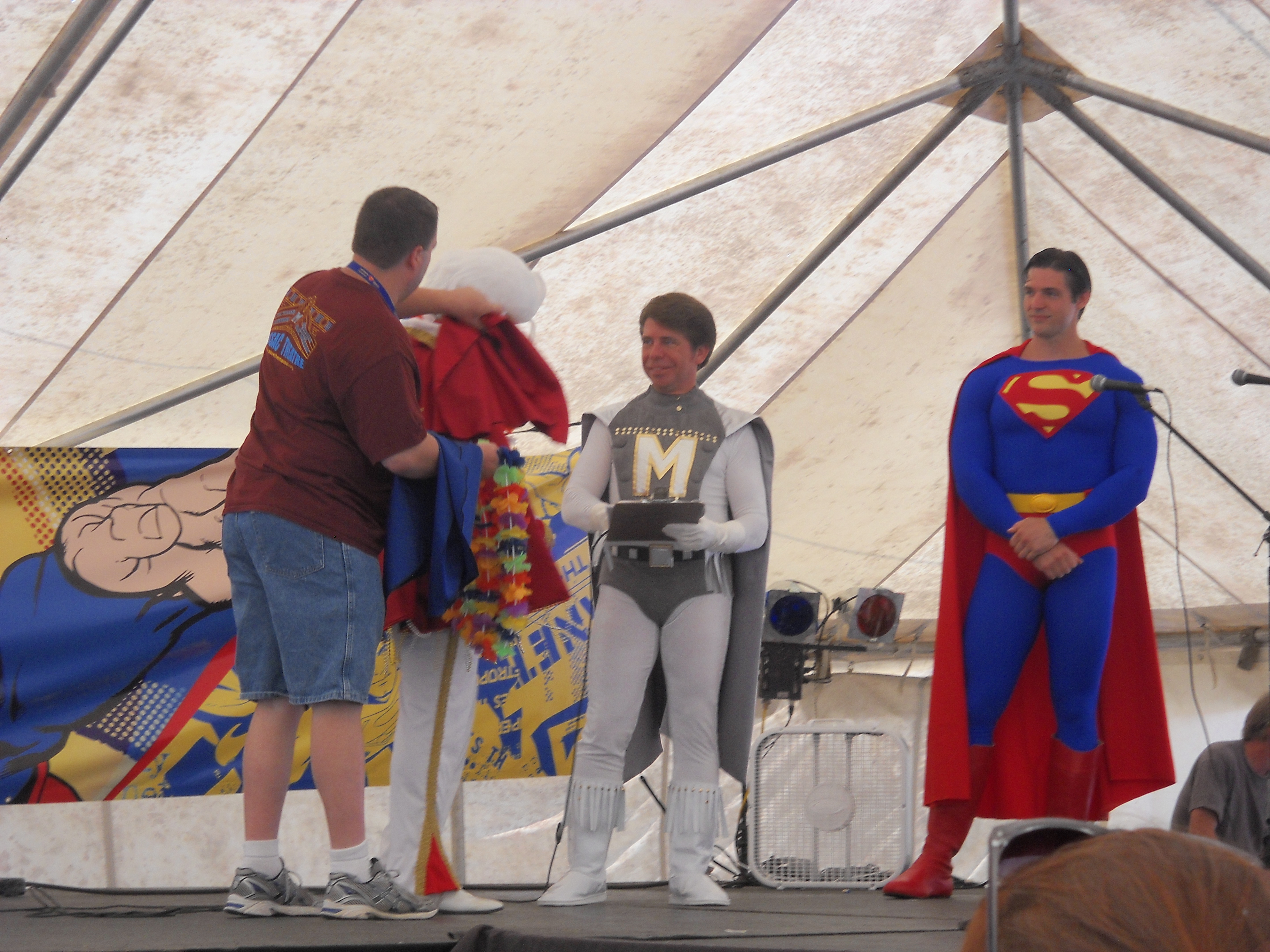 I went up in the “Hero” division. As I hit the stage I forgot all of my lines I had rehearsed waiting beside the tent- D’oh!