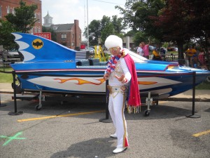 The Bat-Boat was parked next to the Superman statue. Luckily the Ohio River had gone down and the boat didn’t have to float in.