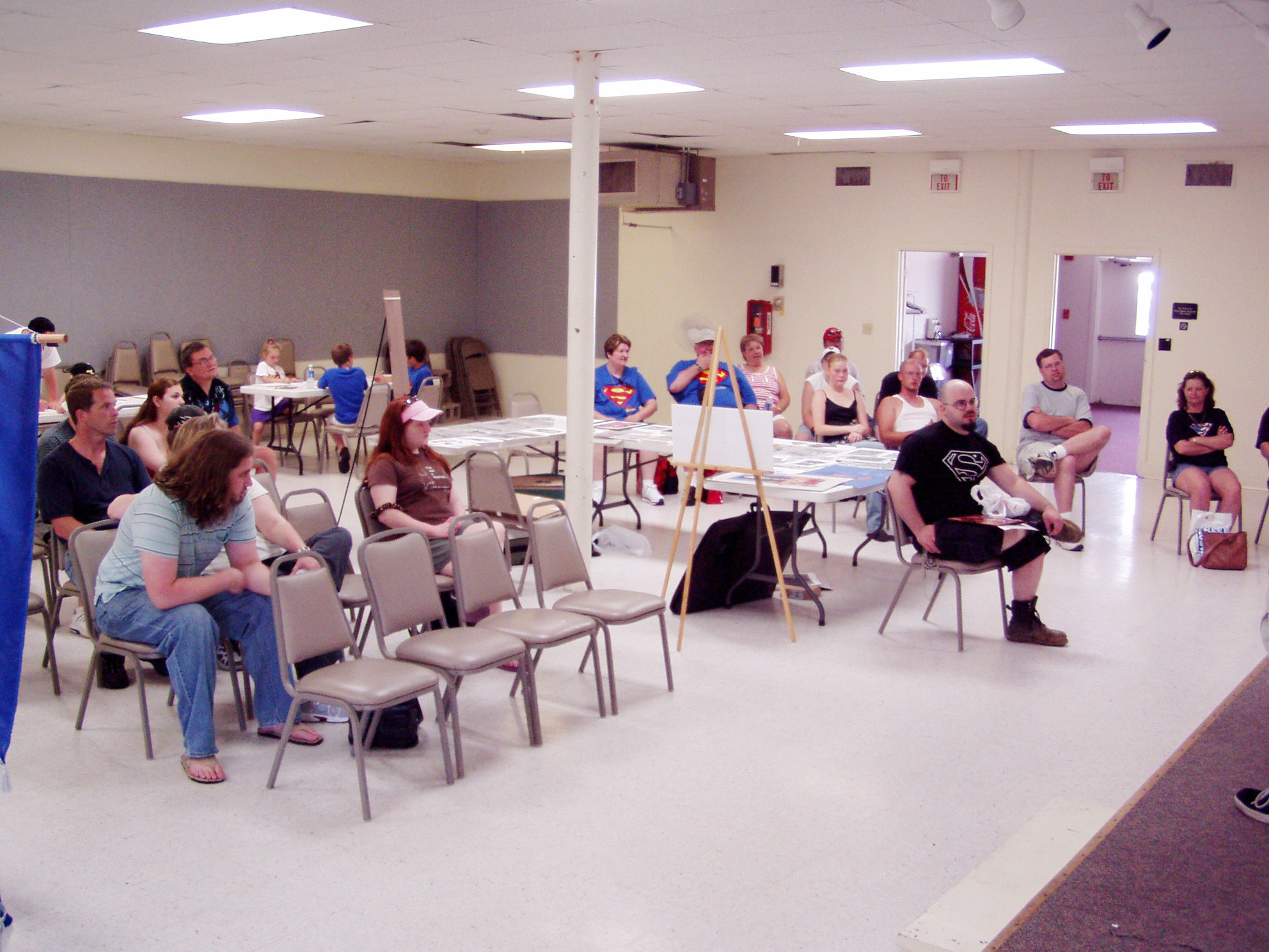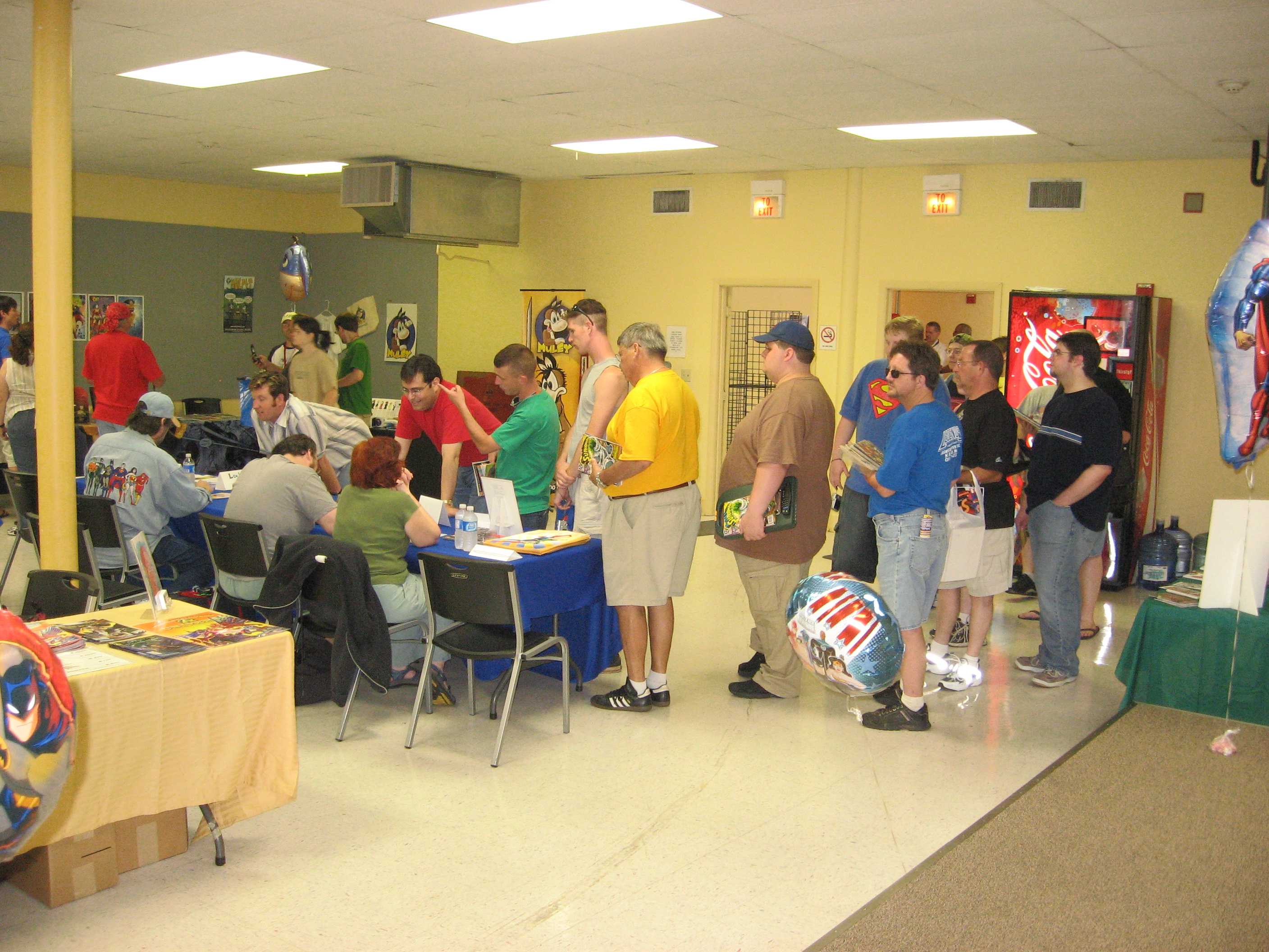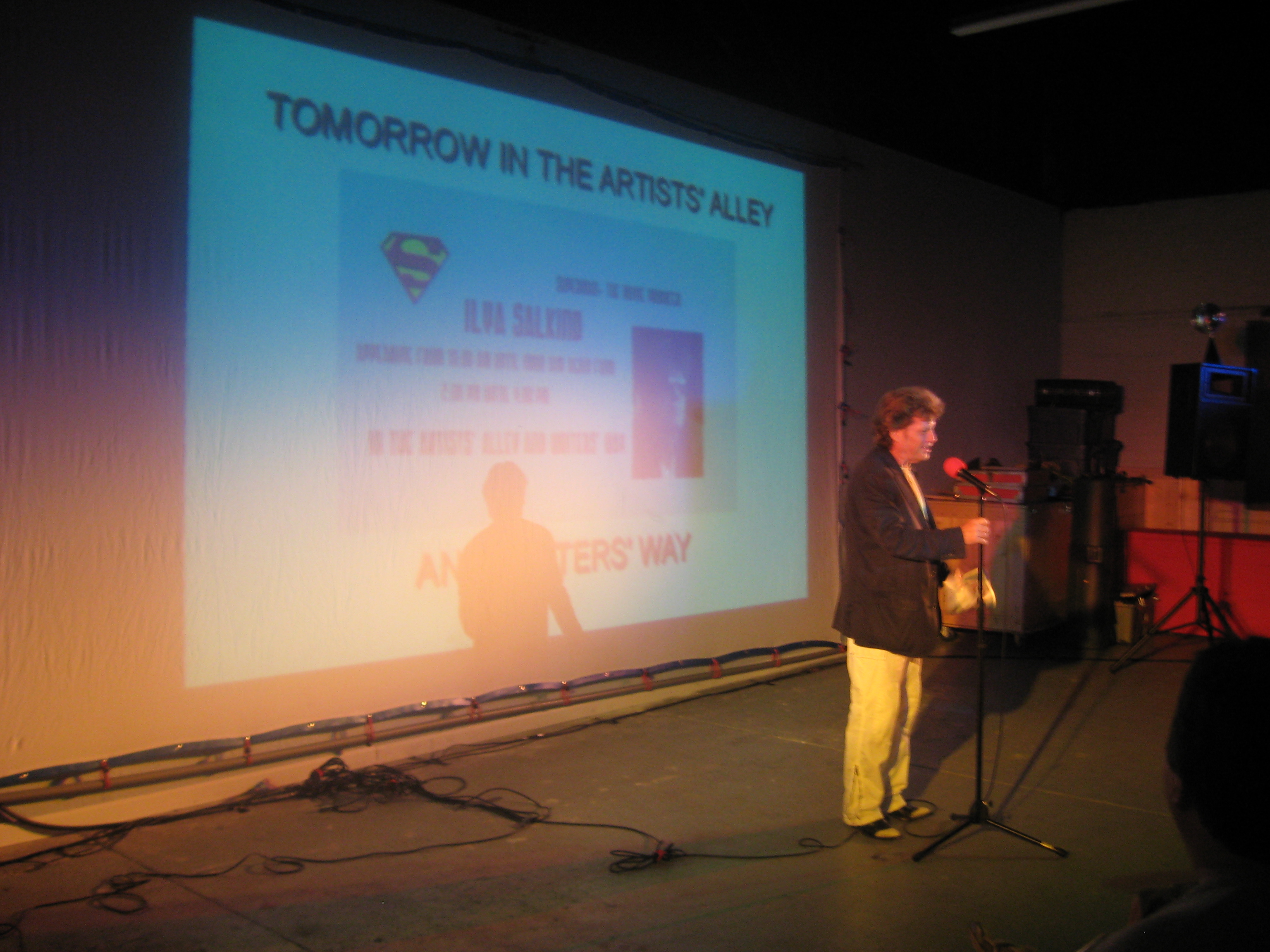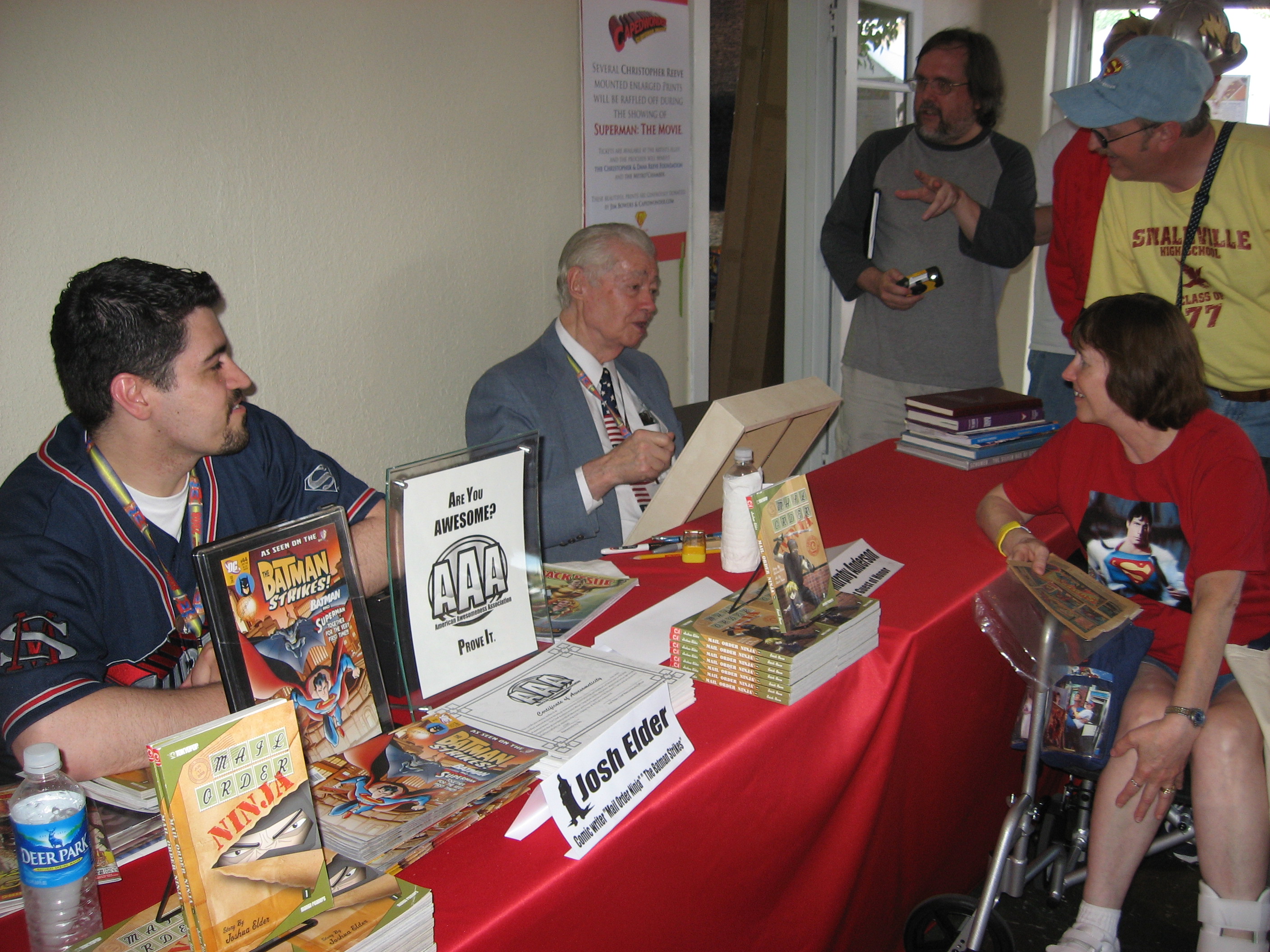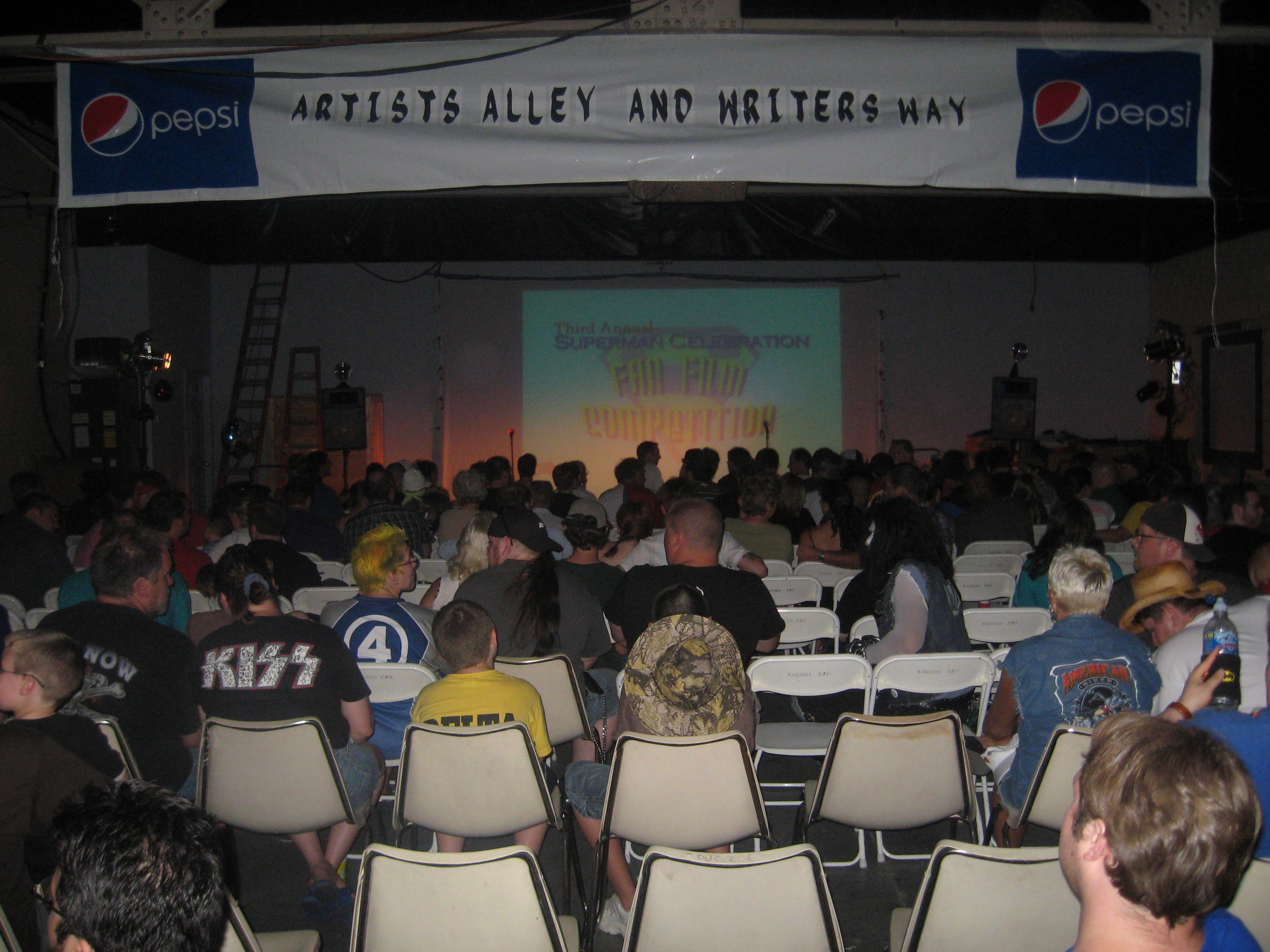 We had more comics seminars, an art show, art contest, freebie promos from DC Comics, and more folks enjoying the A/C. Even Superman Returns screenwriter Michael Dougherty stopped by to check it out. Scott Cranford, the official Superman of Metropolis told me, “I think you’ve created ‘the place to be’ in Metropolis.” That made us feel really good.