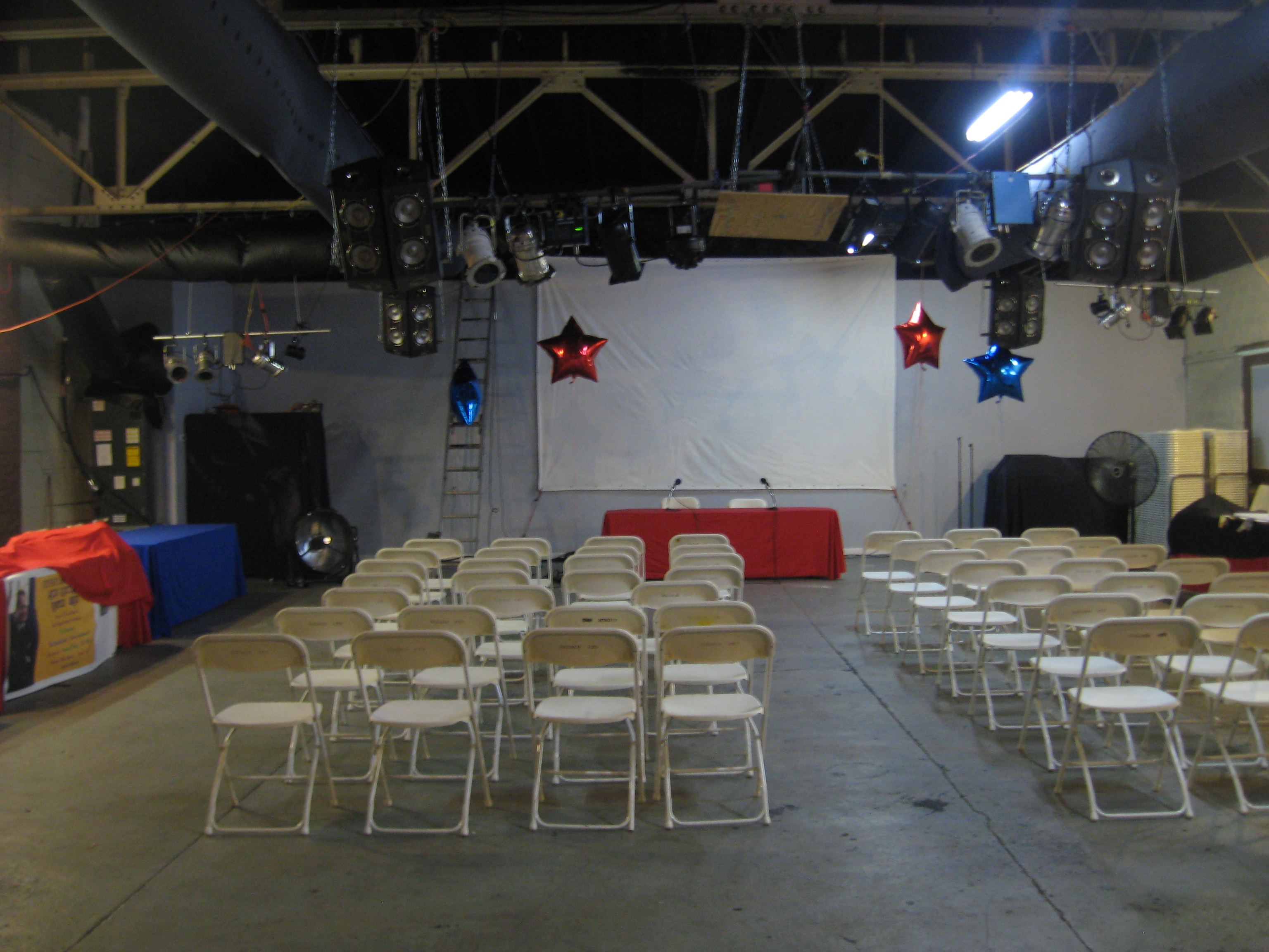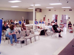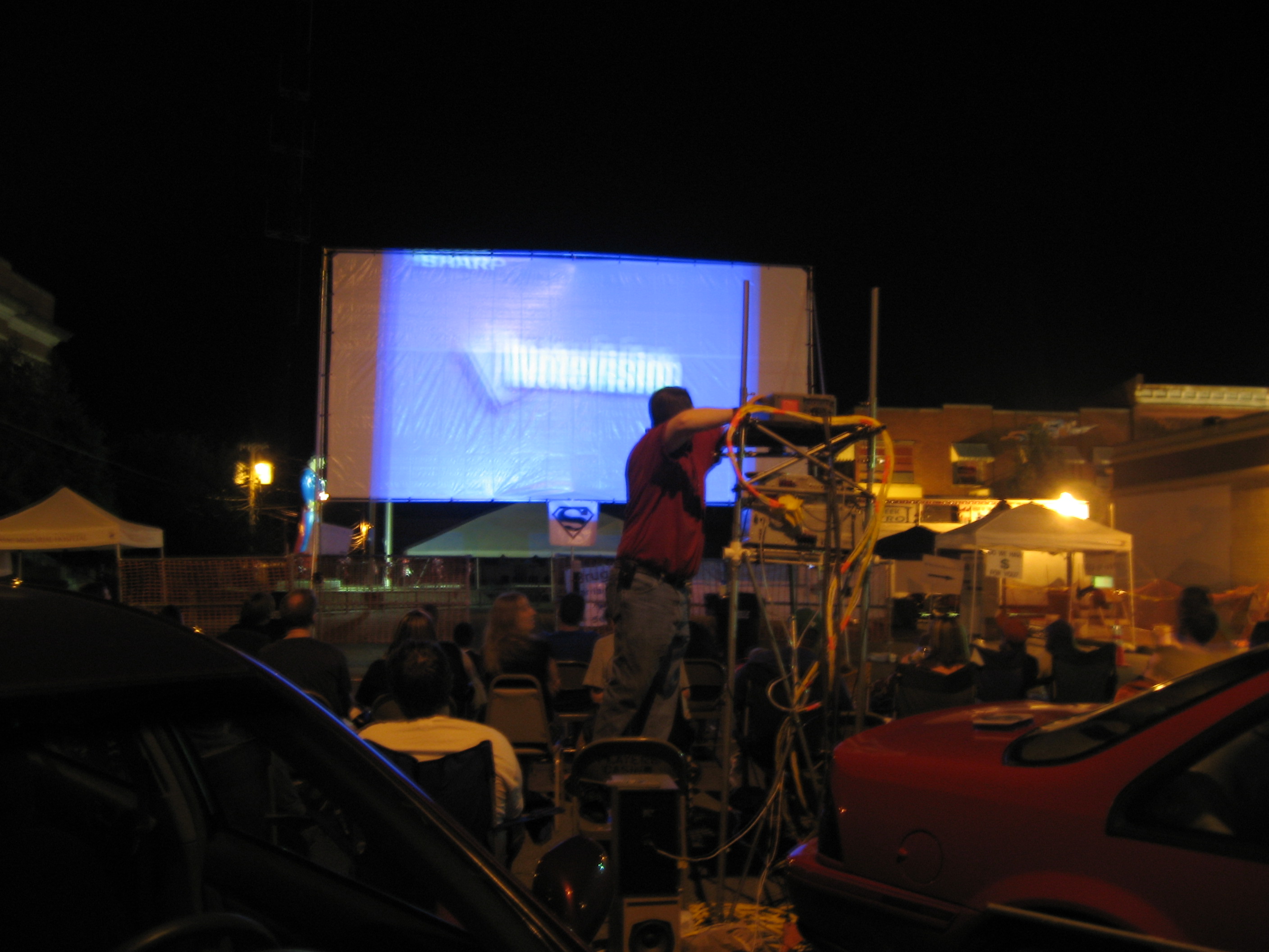 One thing we noticed the past two years was that there wasn’t much of a night life in Metropolis other than the auction or casino. At night the streets were pretty empty. The vendors closed up for the night. Folks went back to their hotels, the casino, the auction dinner, across the bridge to Paducah, or just left. Superman was left standing alone to keep an eye on Market Street while the rest of the town slept. Since we had the building and could stay open as late as we wanted we began to think of ways to entertain folks after dark- and on the cheap.