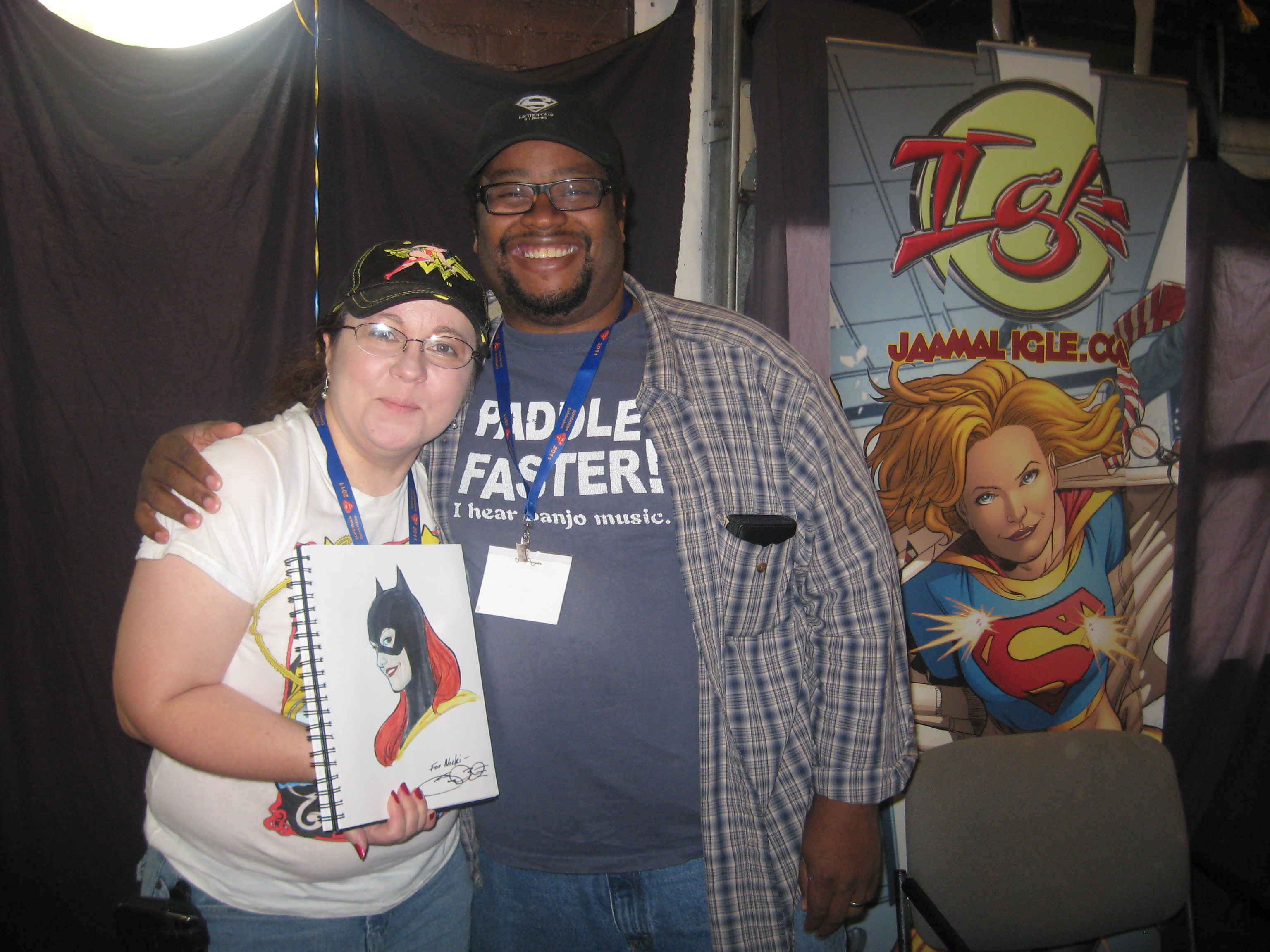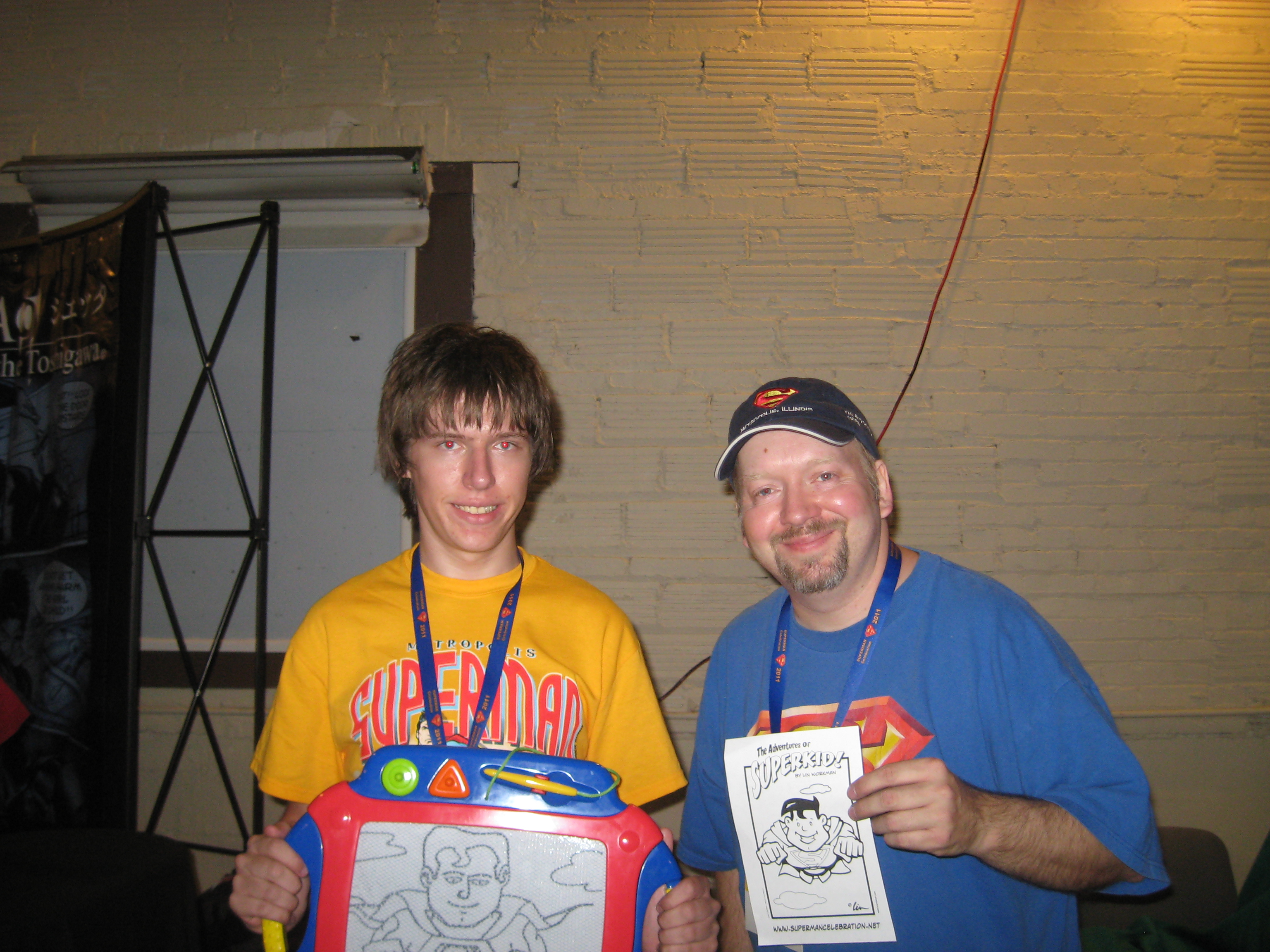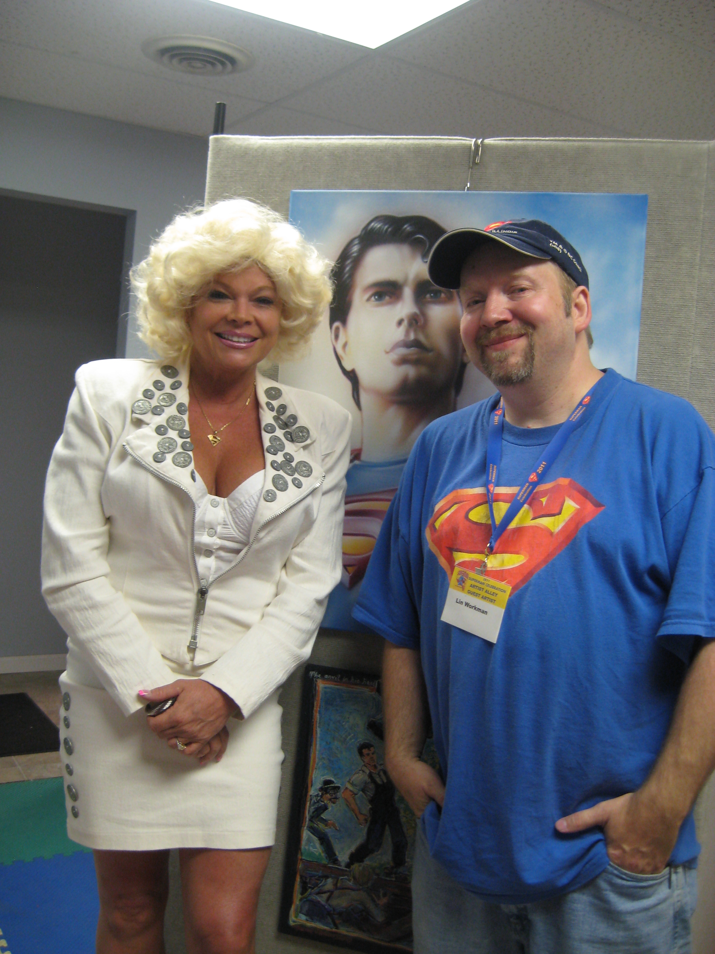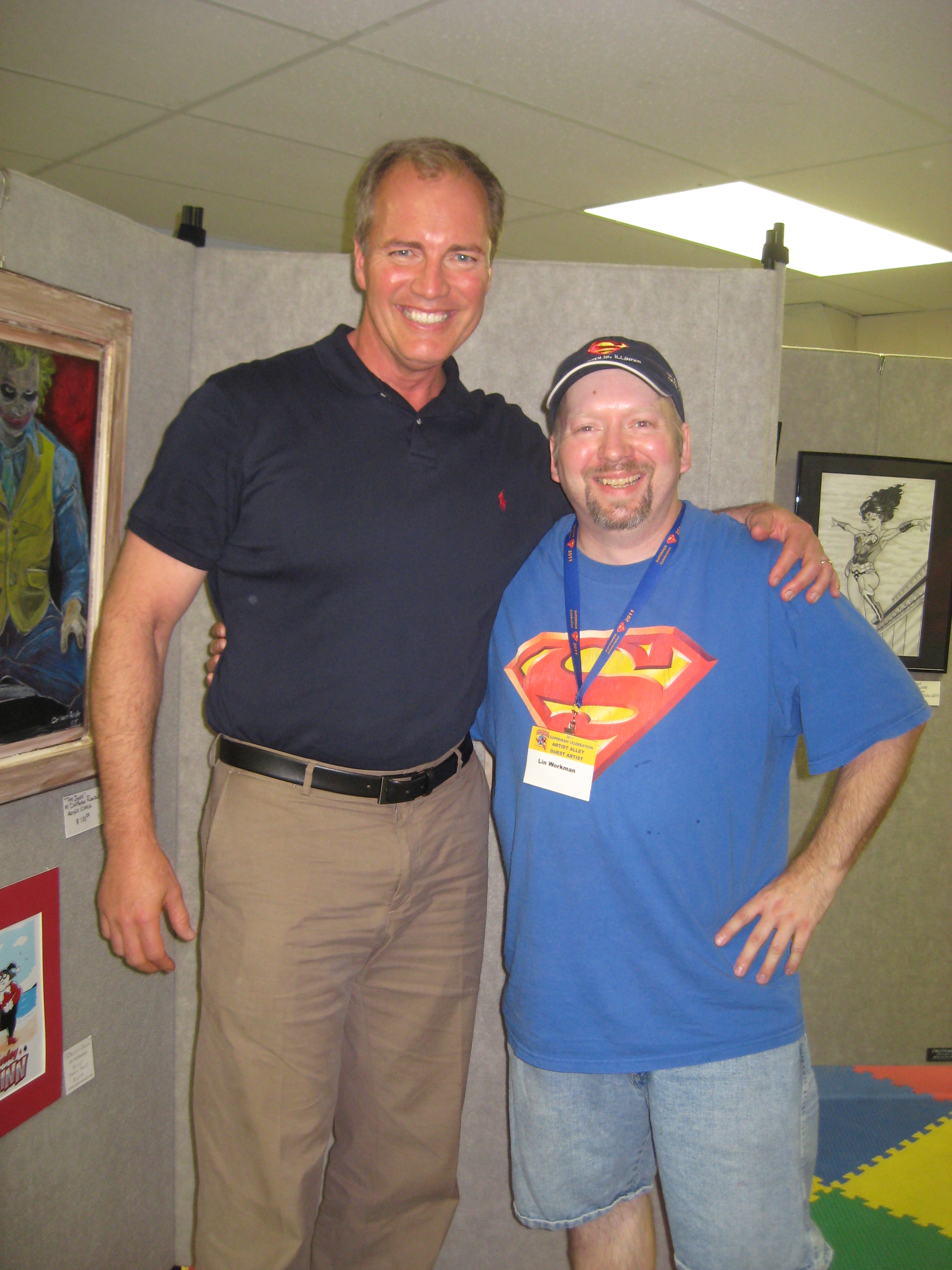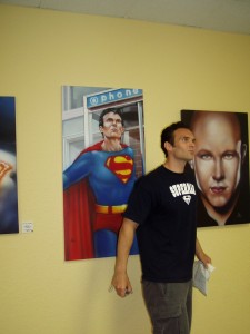 There was a new Superman in town- Josh Boultinghouse who had won that year’s search for Superman contest. He made stops by Artists Alley on his daily rounds of Metropolis, an was always happy to pose for pics and talk to fans in town. We also expanded the art show that year and used new panels to display. I didn’t realize just how much my new toons looked like Josh!