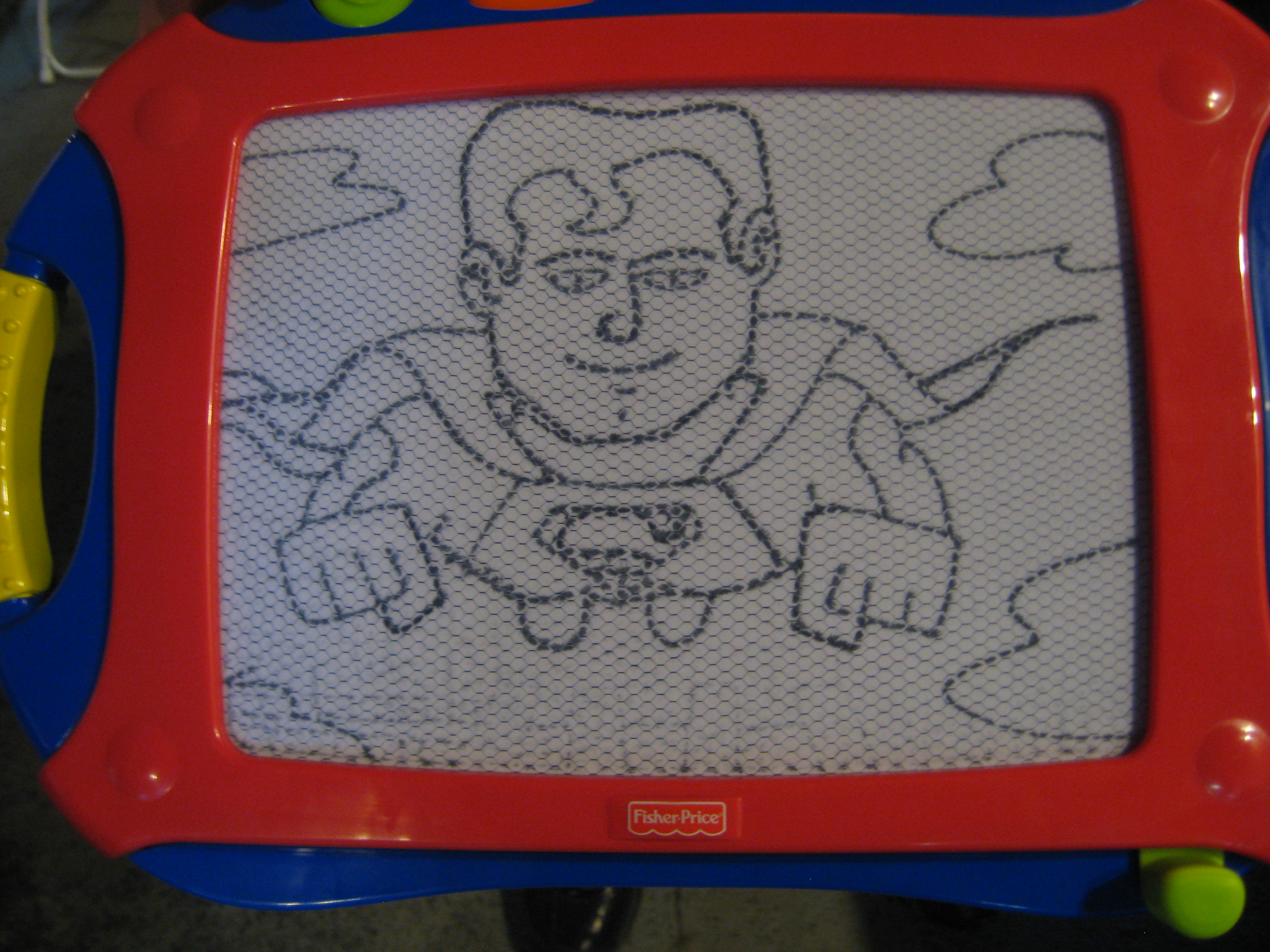 I did a cartooning seminar on Friday and while I was teaching the basics this kid was using a magnadoodle to draw.