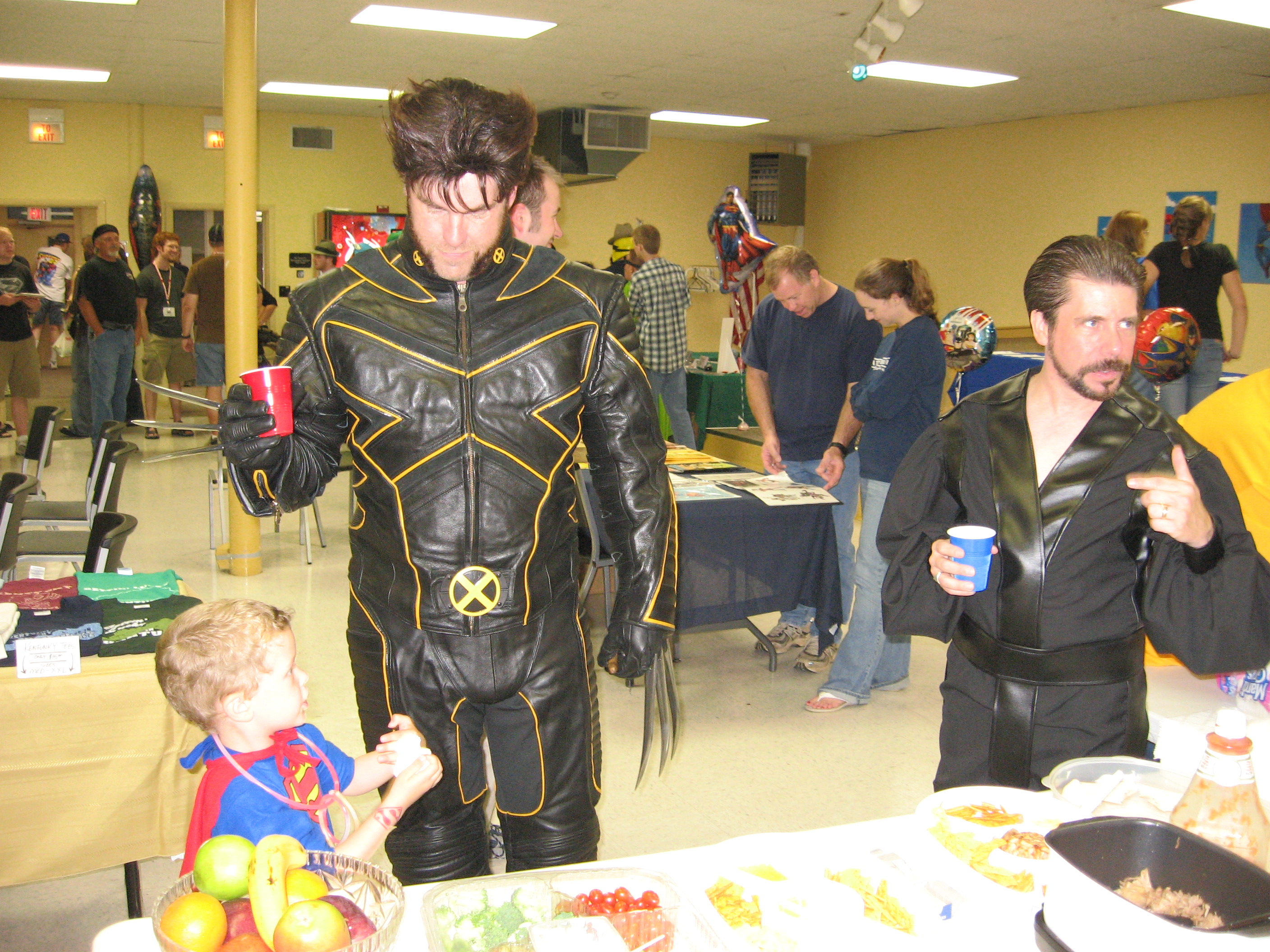 We ended up holding an open house and “block party”. Steve wanted it to be free and open to the public. We ran down to the store, got some drinks and munchies, cooked up some hot dogs, decorated, and invited as many people as we could- especially those with kids. It was a chance for the whole family to wear costumes in the A/C, mingle with other super-fans, and win some door prizes.