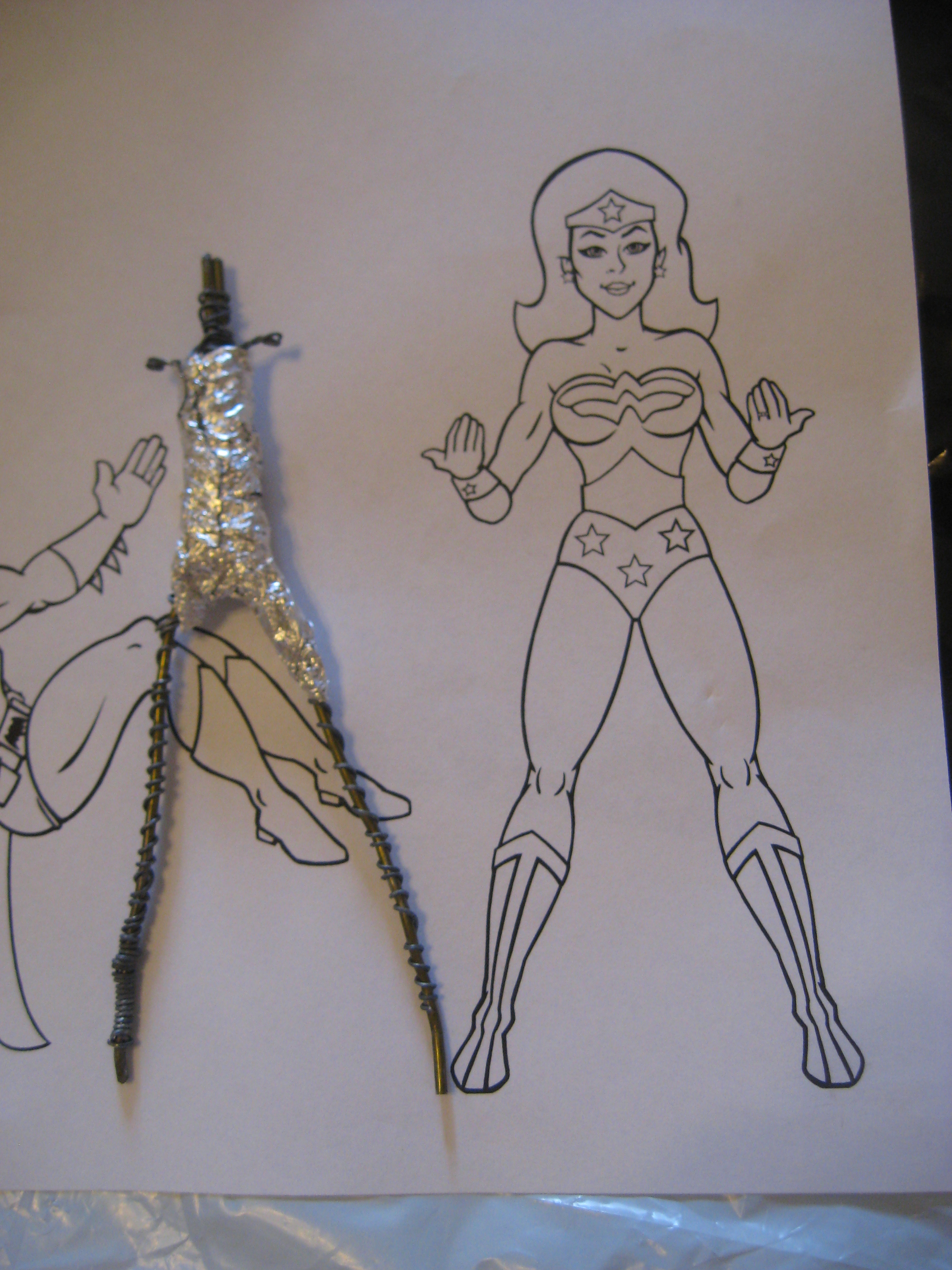 Here’s how it started off. First I did a wire armature/skeleton and then added a two part resin called Magic Sculpt.
