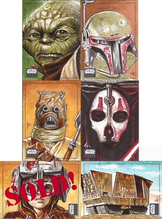 Well, the wedding is just around the corner and since I need a few more bucks before it gets here I’m dropping the price of my Topps Star Wars Galaxy 6 sketch cards from $205.00 each down to $155.00 each- price includes shipping/handling/insurance. That’s $50 off the original price of each!