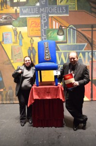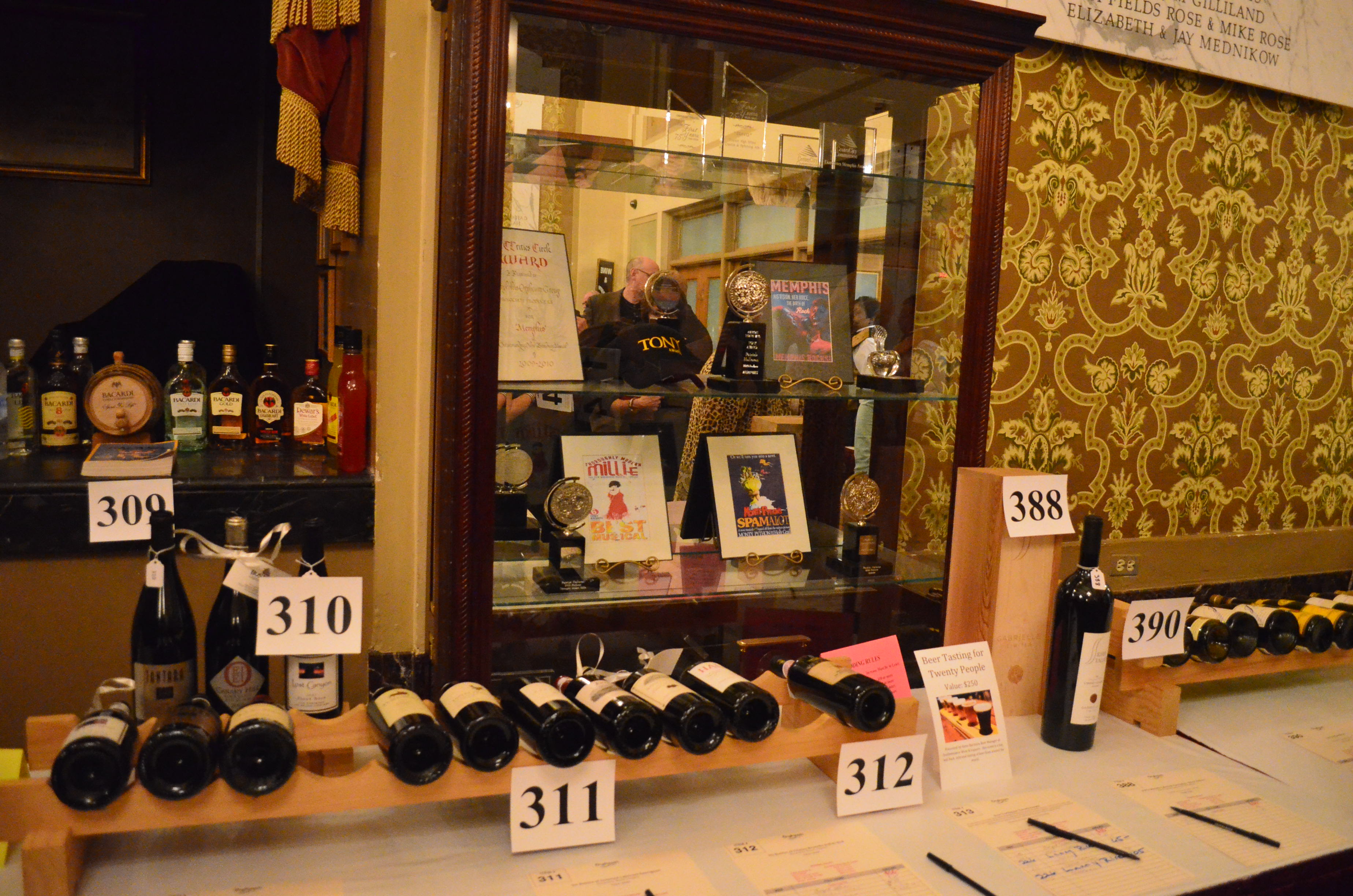 When we got to The Orpheum the lobby and side room were filled with silent auction items and people. Rhonda and Lynn met us as we entered the lobby, and I shortly ran into the Orpheum’s biggest cheerleader Pat Halloran and got to ask him if he liked my “MEMPHIS” chair. He said he really did, which was good to hear since Pat was a producer of “MEMPHIS” and won a Tony for that musical- his third!