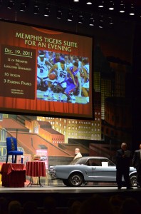 The first item up in the live auction was a suite, 16 tickets, and 3 parking passes for a U of M Tigers basketball game at the FedEx Forum. It went for $1000.00.