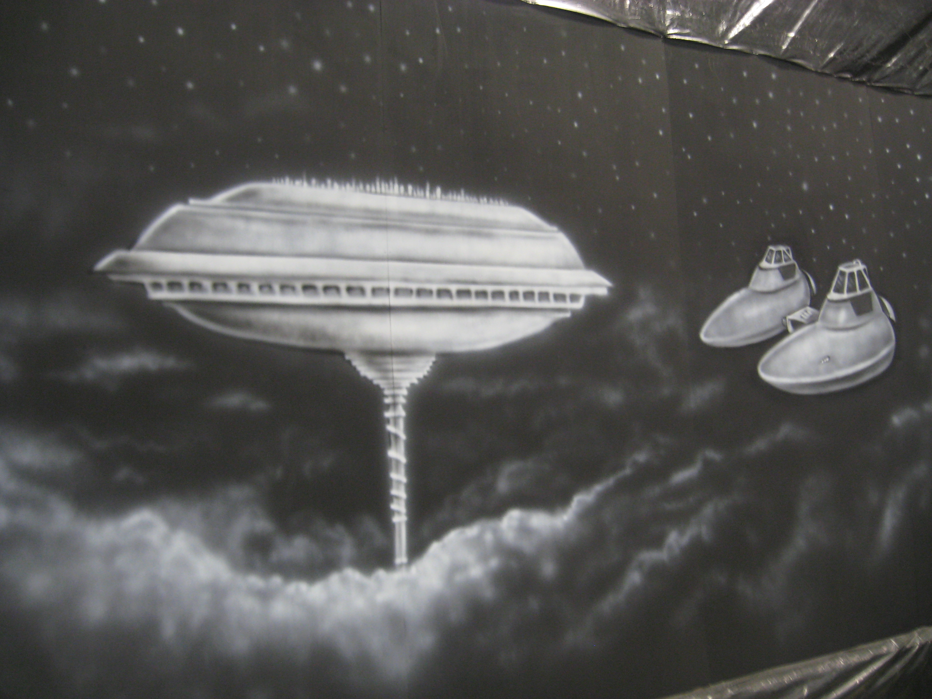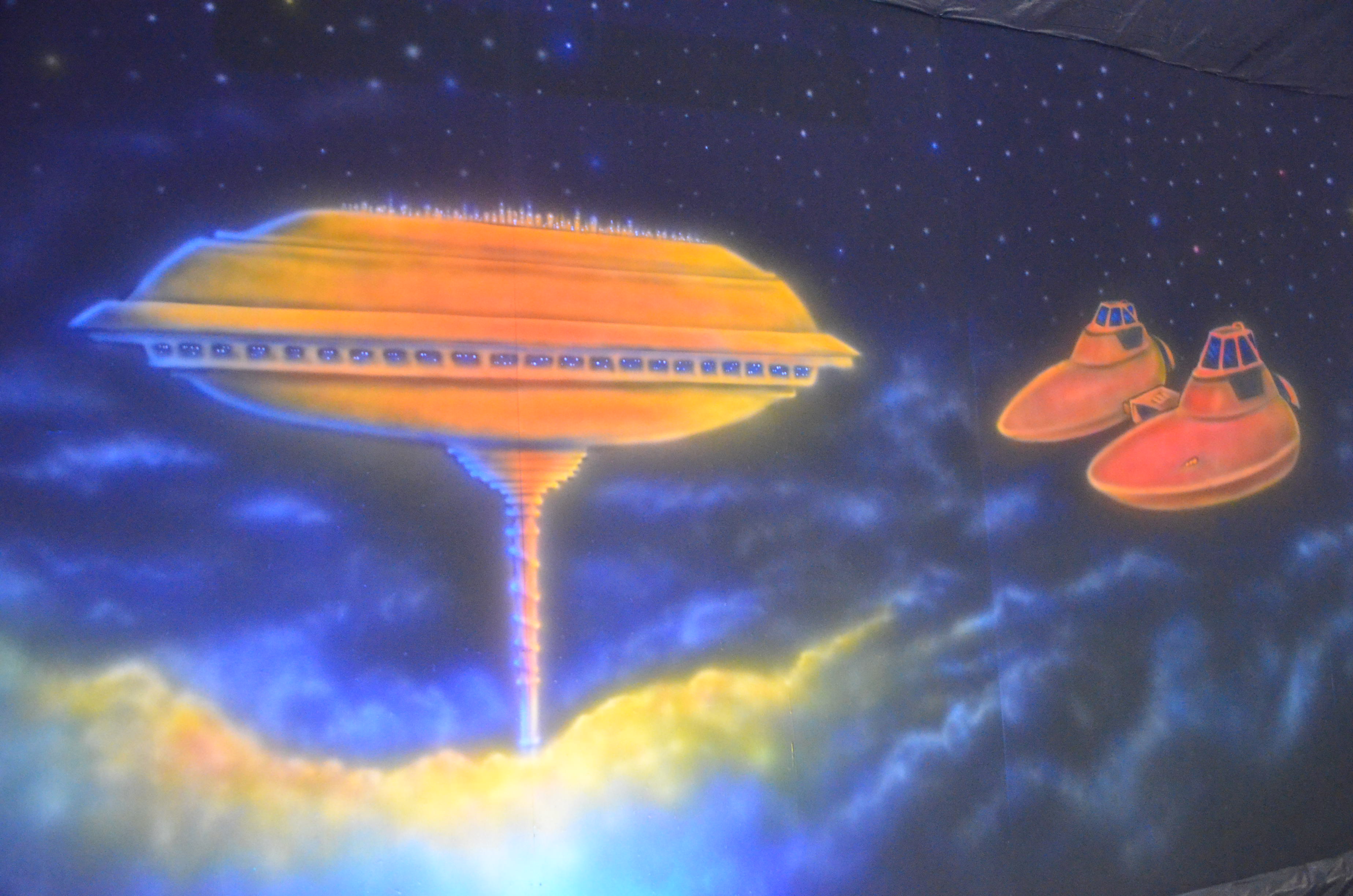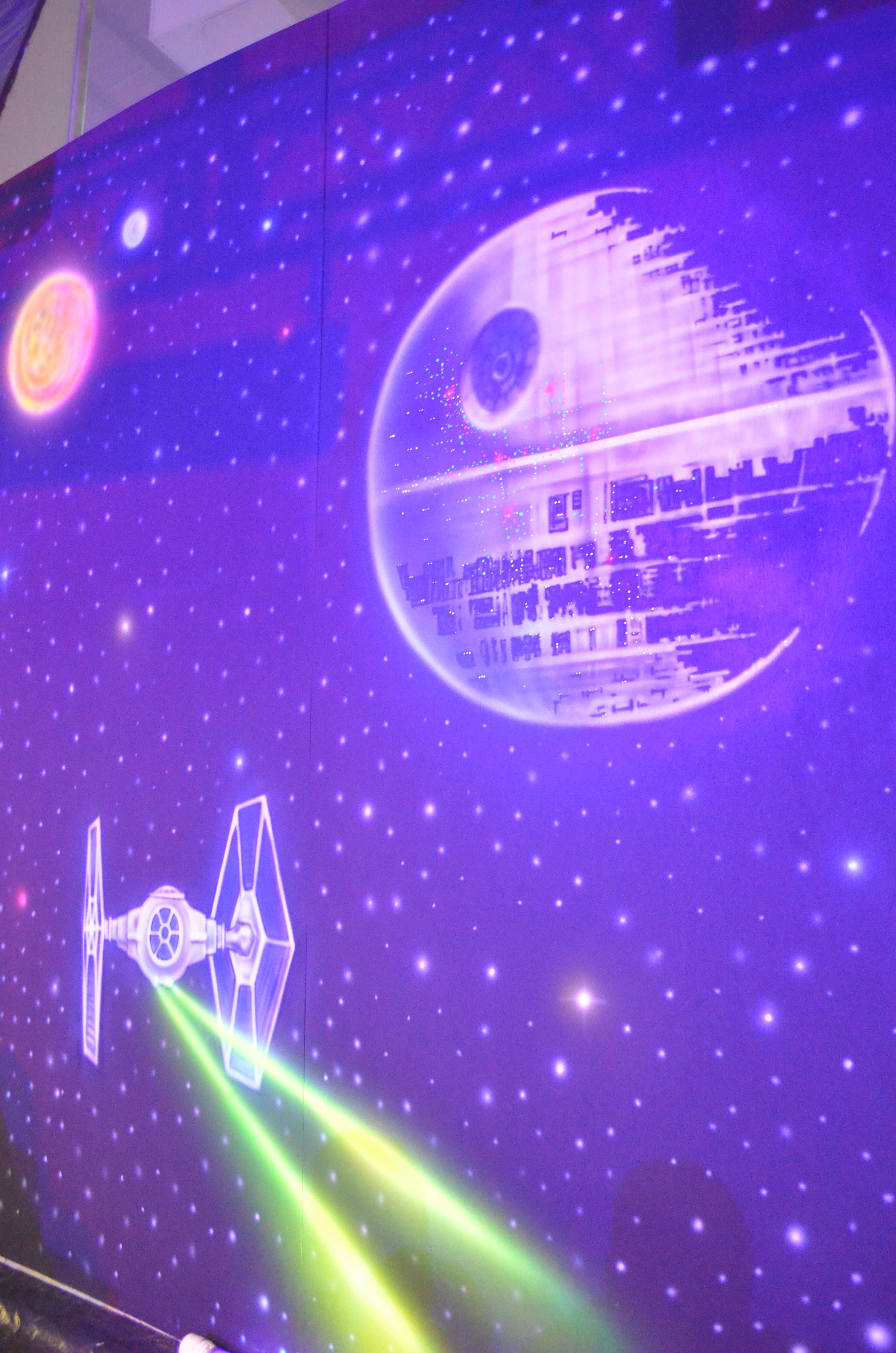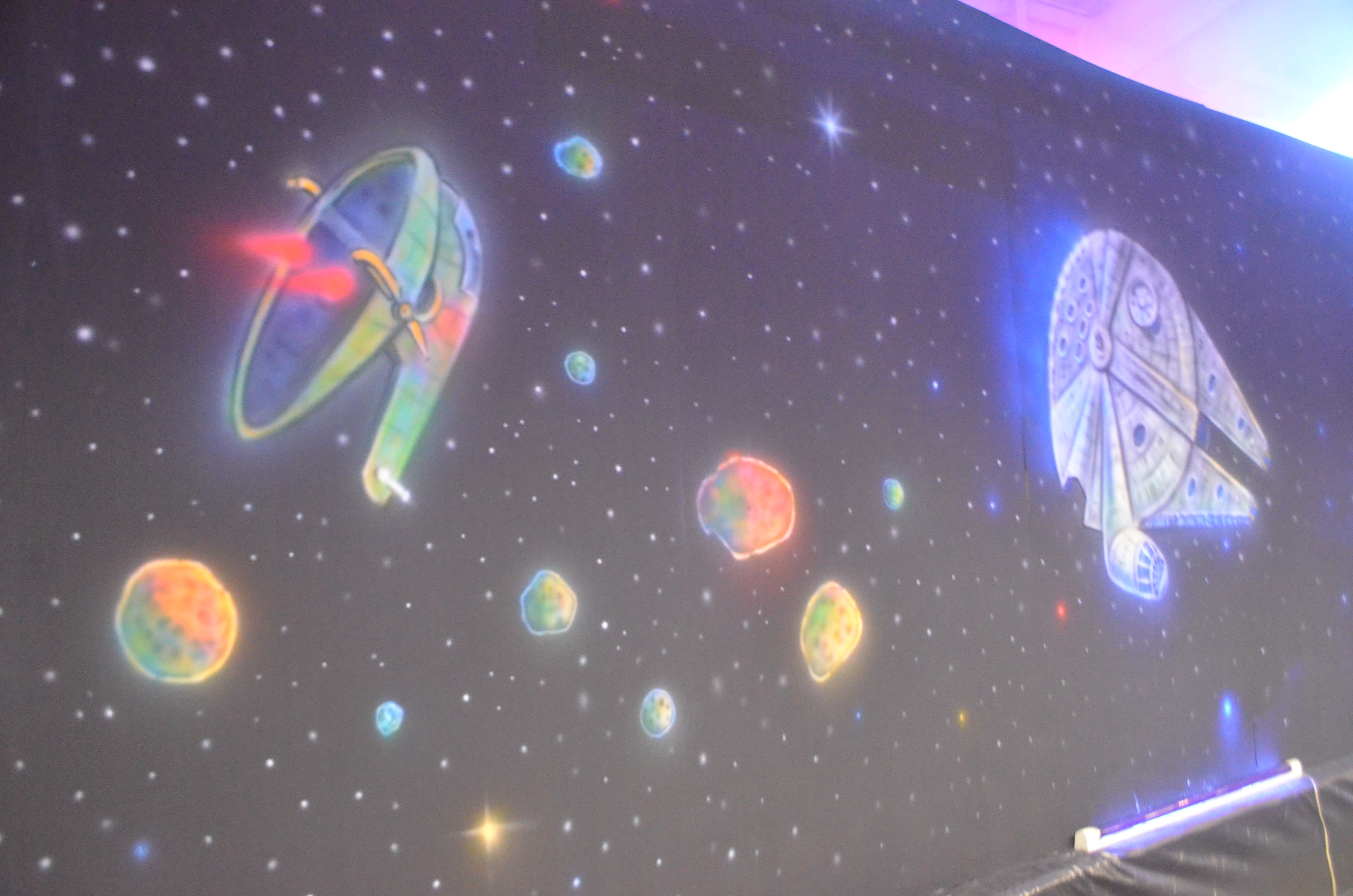 My part this year was painting two 40’+ walls with Star Wars stuffs. I wanted it to look like a giant 70’s black light poster and used some of the same 3D paint I use at the haunt.