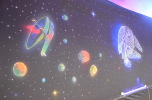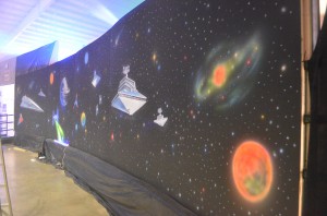 Well, before an event like this can open it’s doors a lot of work has to be done first. The Community Foundation crew did an amazing job of converting the Southaven Arena’s indoor space into outer space! You can see some of our event pics on my Have Geek Will Travel site.