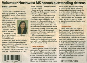 This week I got a letter in the mail from Volunteer Northwest Mississippi saying I had been nominated for and selected to receive a 2012 President’s Volunteer Service Award.