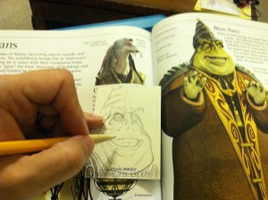 I showed them some of my work and the Bushi Tales characters I helped design, then we drew superheros, villains, and a slew of animated characters and objects. Kids also drew their own characters, which was fun to watch. With the last class of older kids I also talked a bit about depth of field, foreshortening, and perspective, too. I showed them some of the markers and pens I use, and how color and line weight can help with depth of field. Didn’t want to go over their heads and only had an hour to give them the basics I know, but I think they got a lot out of it. I know they all had fun!