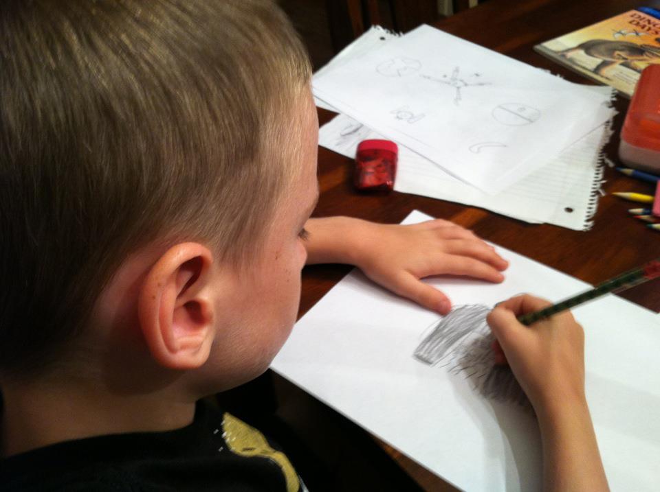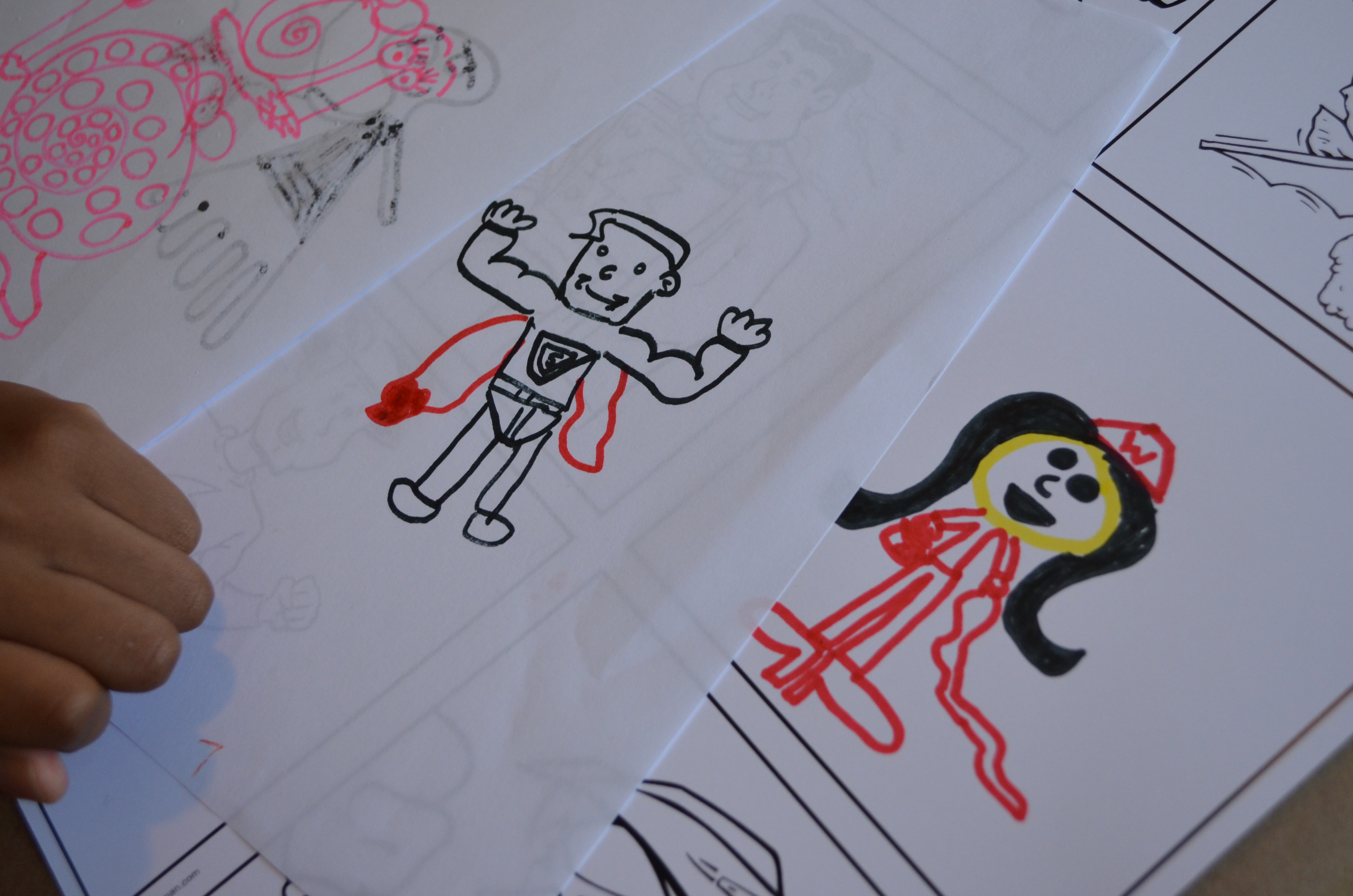 We spent a couple hours on a Friday morning drawing Superman, Batman, Darth Vader, Sponge Bob, Two-Face, spaceships, and more.