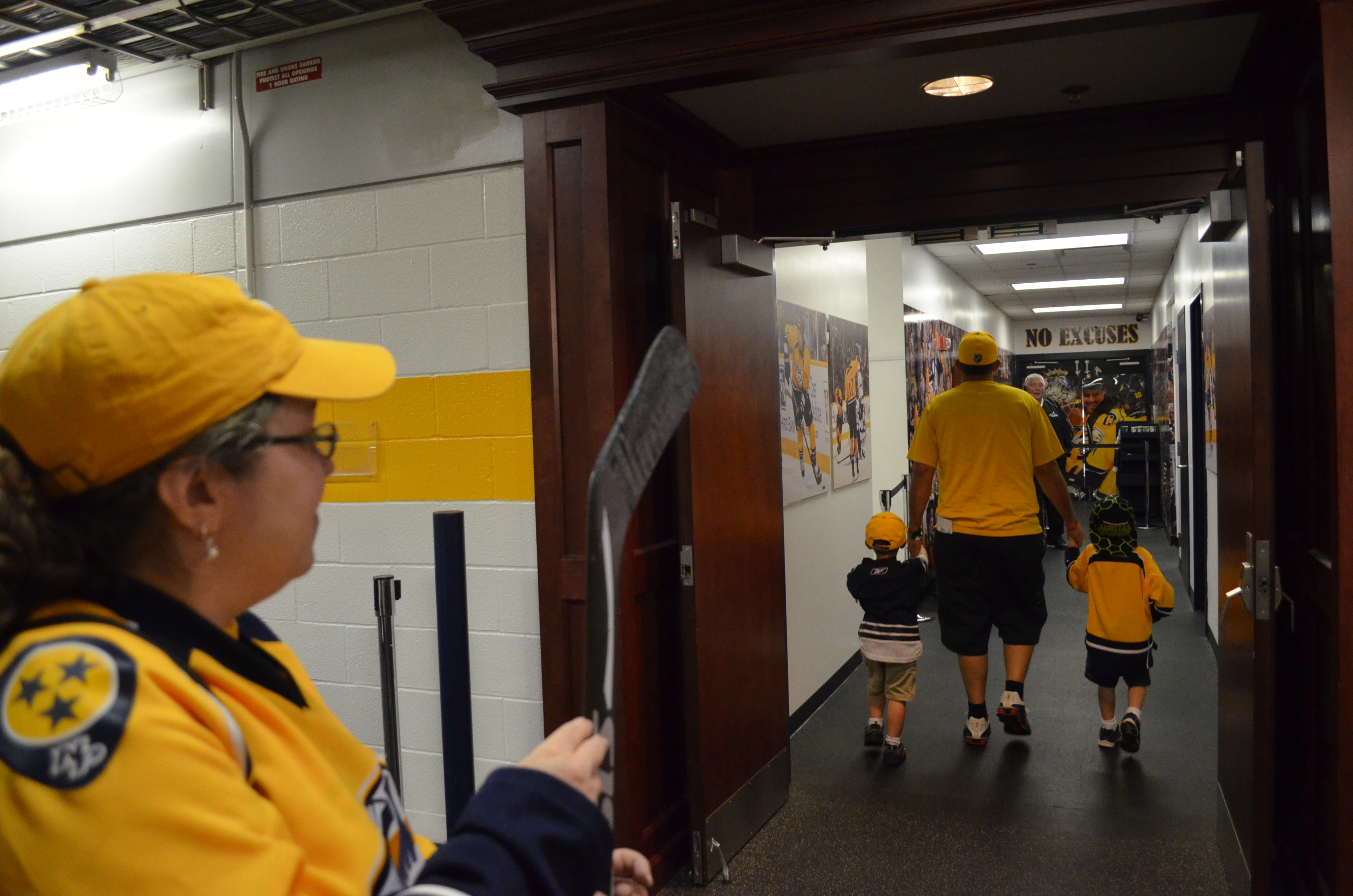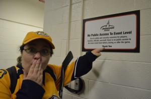 The line moved along pretty well and soon it was our turn to head down the hallway that leads to the locker room. It’s also the same hallway the Preds head down to the ice- right through those doors at the end.