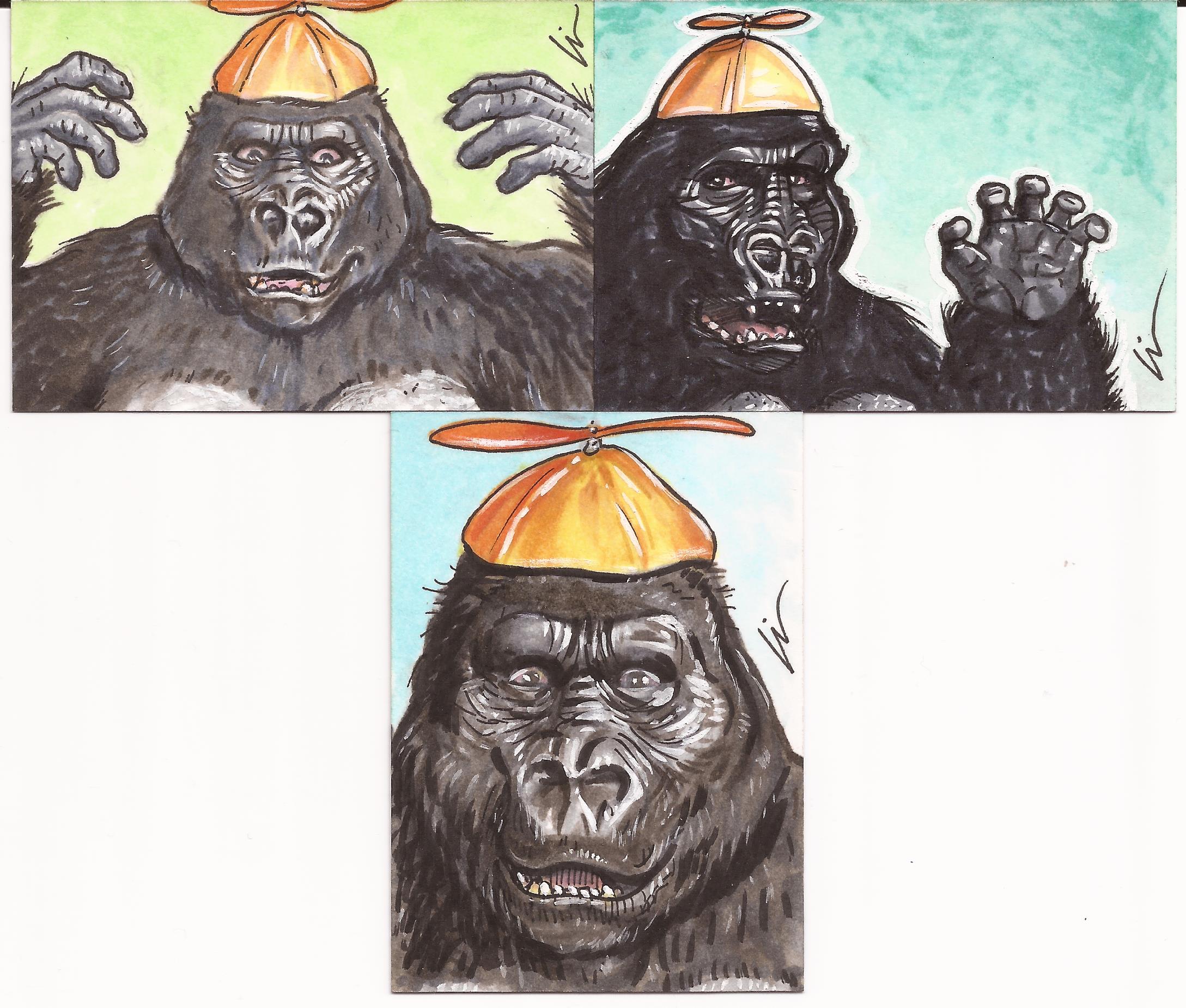 I was excited to be asked to be a part of this card set, but when I found out Bob and Kathy Burns were doing autographs and I could draw Bob‘s Kogar and Tracy the gorilla characters- I knew I had to be on this project! Bob played/trained Tracy on the live action The Ghost Busters TV show back in 1975, and he and Kathy have a cameo in Peter Jackson’s King Kong movie.