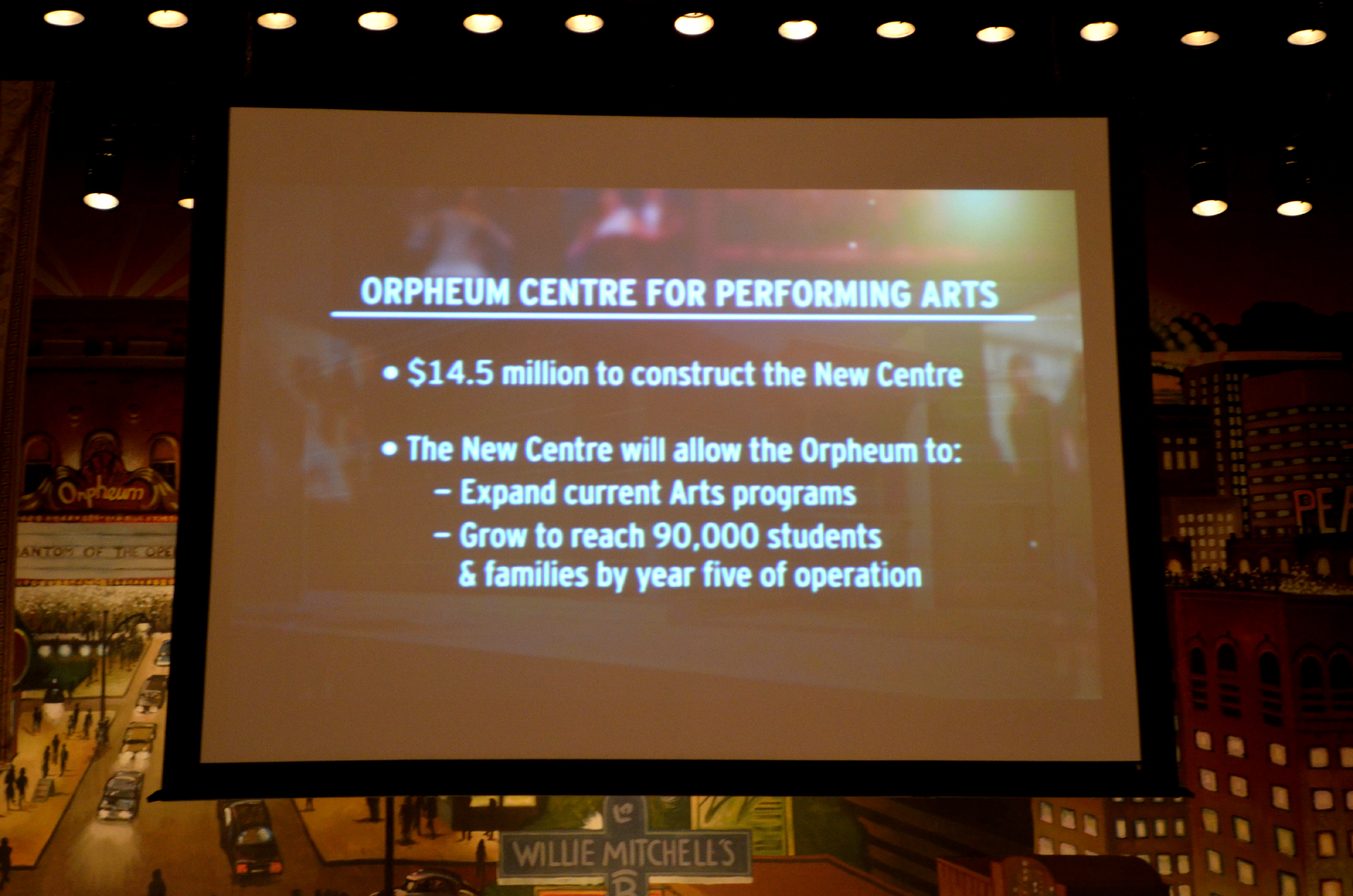 The money from the auction is going to help fund the new Orpheum Centre For Performing Arts which will break ground next to the Orpheum this January.