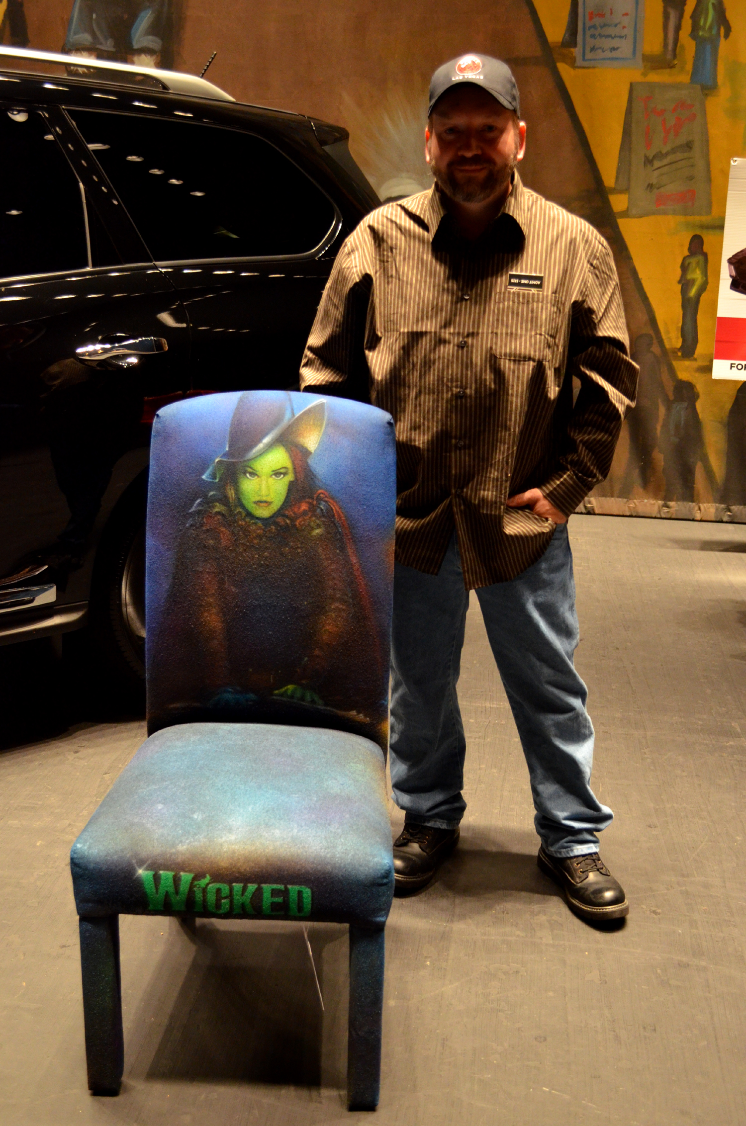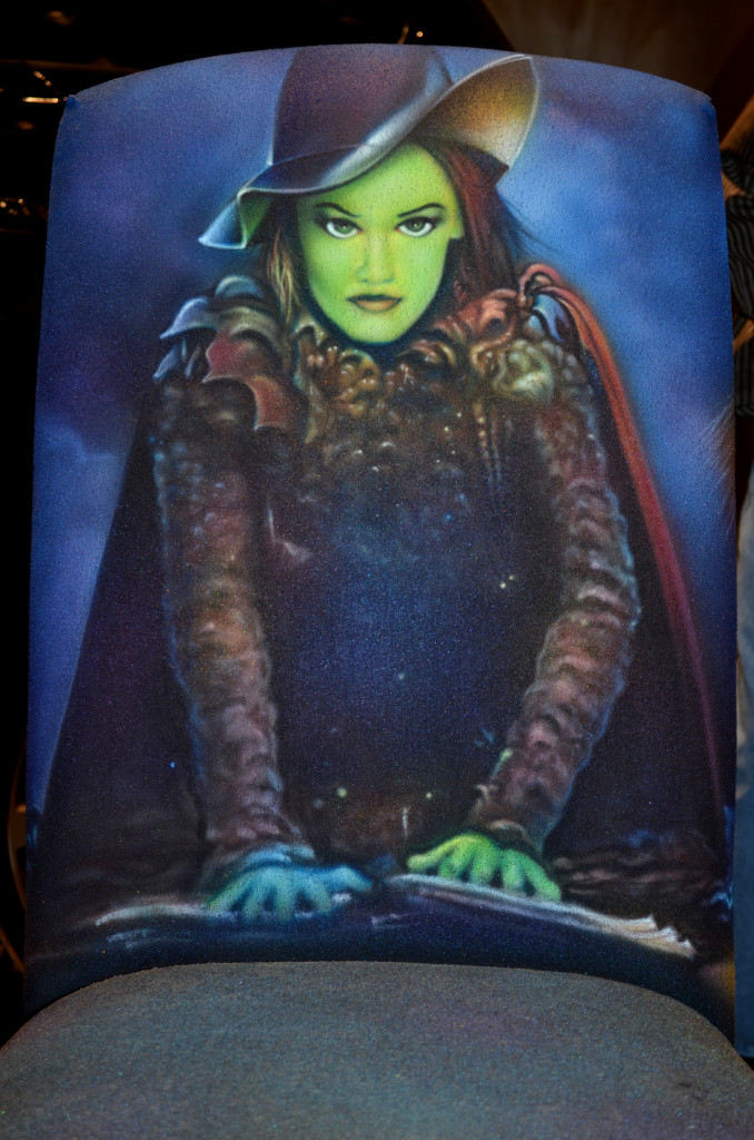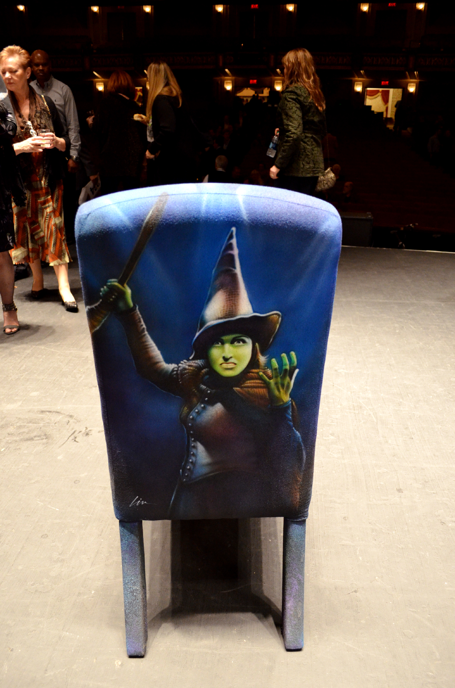 This was the fourth annual auction I’ve done a painted canvas chair for, and the third time I’ve had one in the live auction. I’ve done a Phantom of the Opera, a Memphis (the musical) and a Memphis Tigers chair. You can see them all in my gallery here.