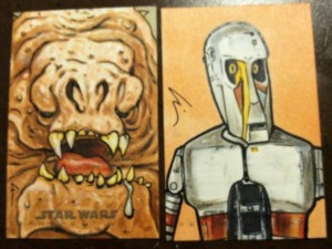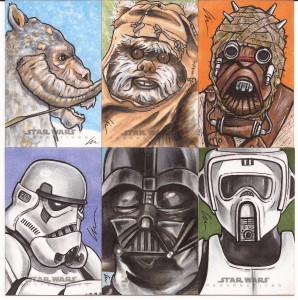 I recently did 50 sketch cards (plus 6 artist returns above) for Topp’s Stars Wars Chrome Perspectives card set.