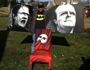 Not sure how much each painting and my chair raised, but did get a kick out of seeing folks bid on them- and I found out my friend Brad got the Bela/Frank painting last week for his birthday. Last year my “Wicked” chair raised $2300.00! Not sure what I want to paint for next year. Maybe a Grizzlies, a Memphis touristy theme, or another musical/show…going to have to think on it.