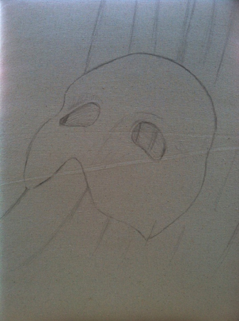 This is what the chair looked like when it was delivered to me from by the Orpheum. I started off sketching the image in pencil.