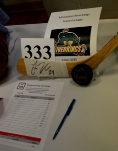 As always there were lots of great items in the live and silent auction. Nicki won a Mississippi Riverkings hockey package which included tickets an autographed stick and puck.
