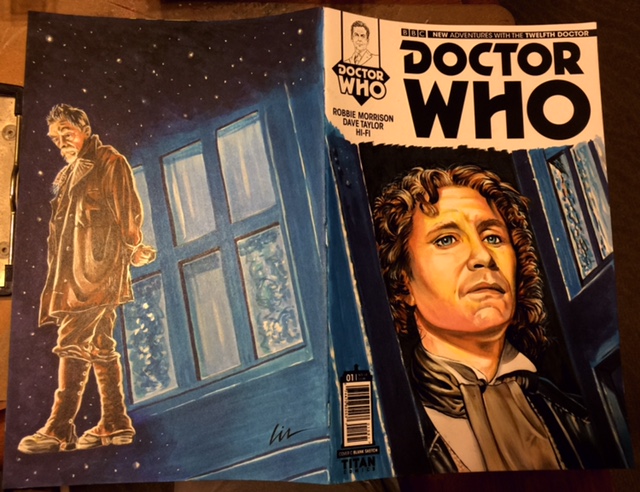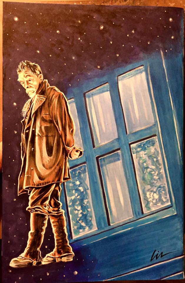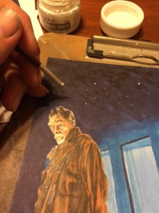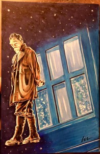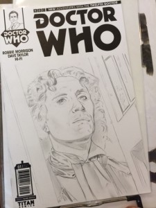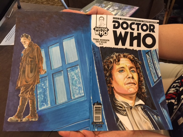 This con I worked on a War Doctor/8th Doctor illustration. Since Paul McGann was also one of the special guests this year, and I’ve always dug that head shot of him with the TARDIS, I picked that shot to work from. The 8th Doctor morphs into my new favorite Doctor- “The Other Doctor/War Doctor” (played by John Hurt), so I thought I’d add “Grandpa” to the back of the illustration.