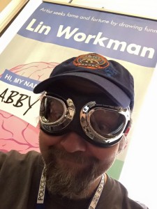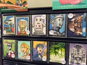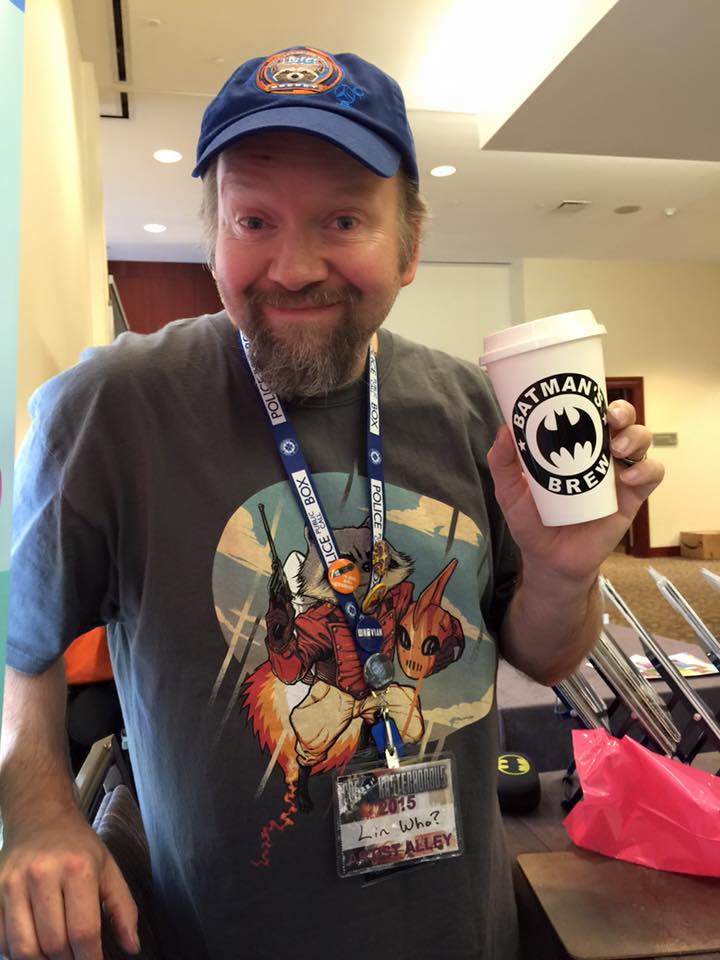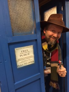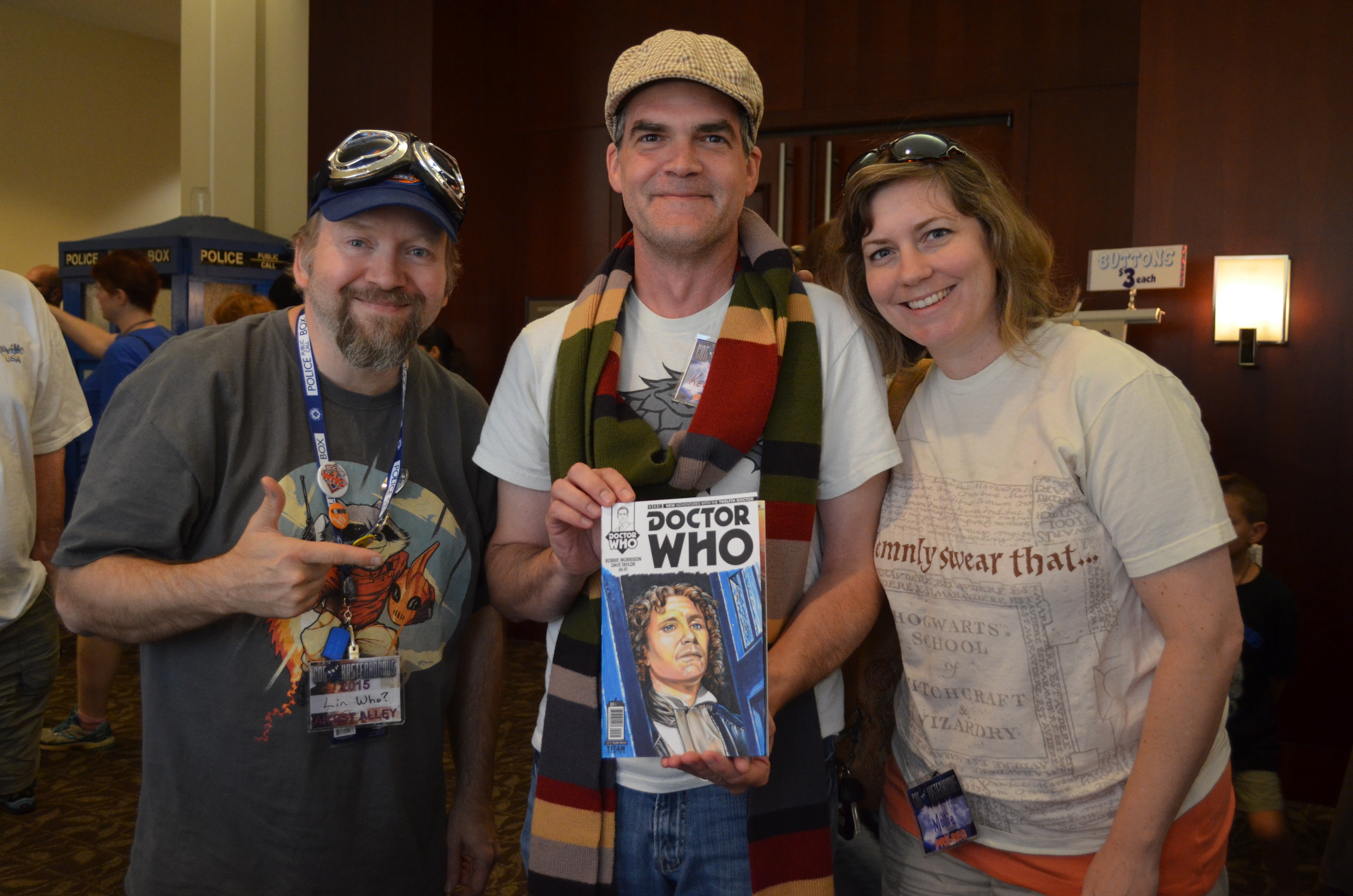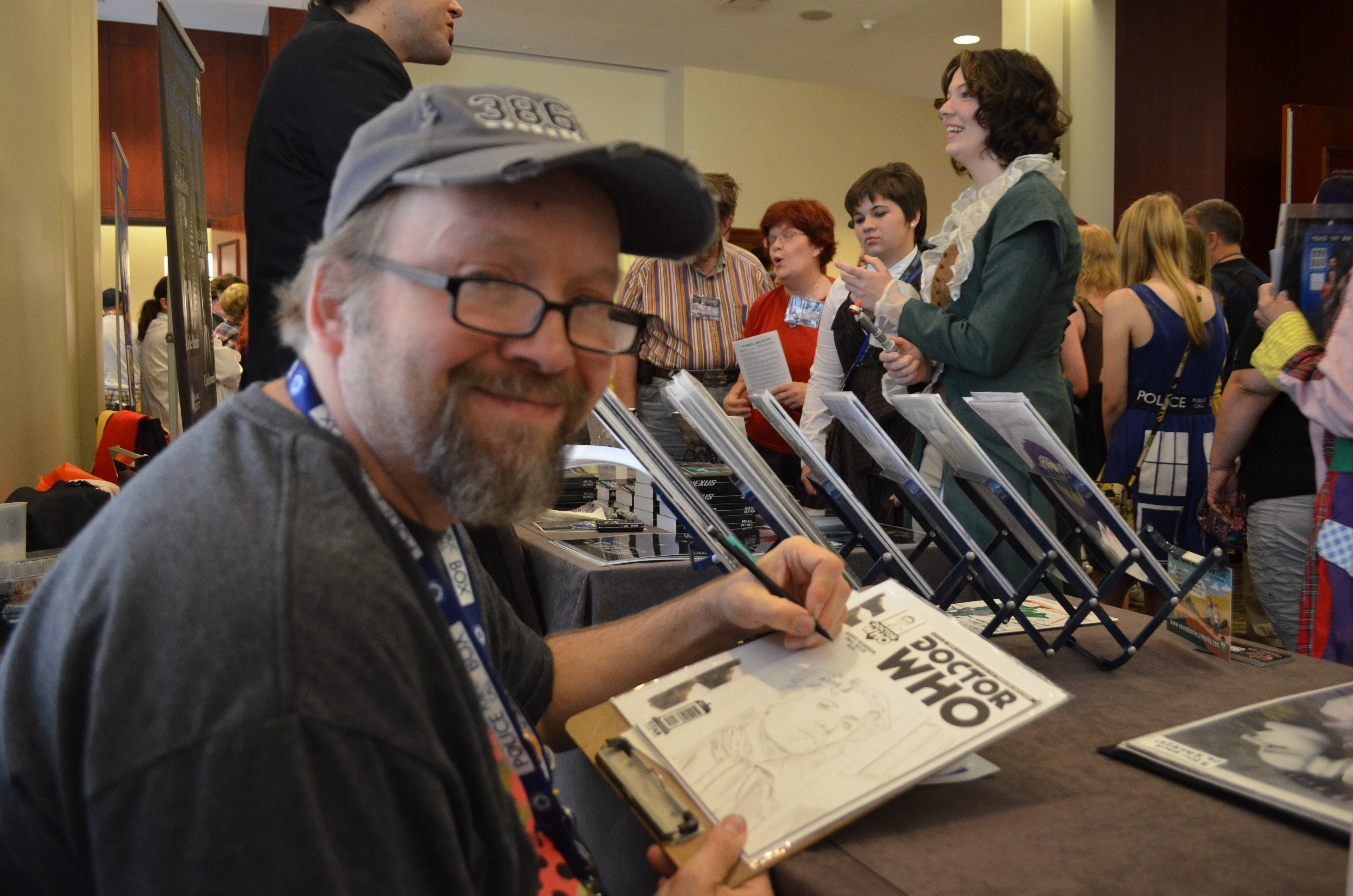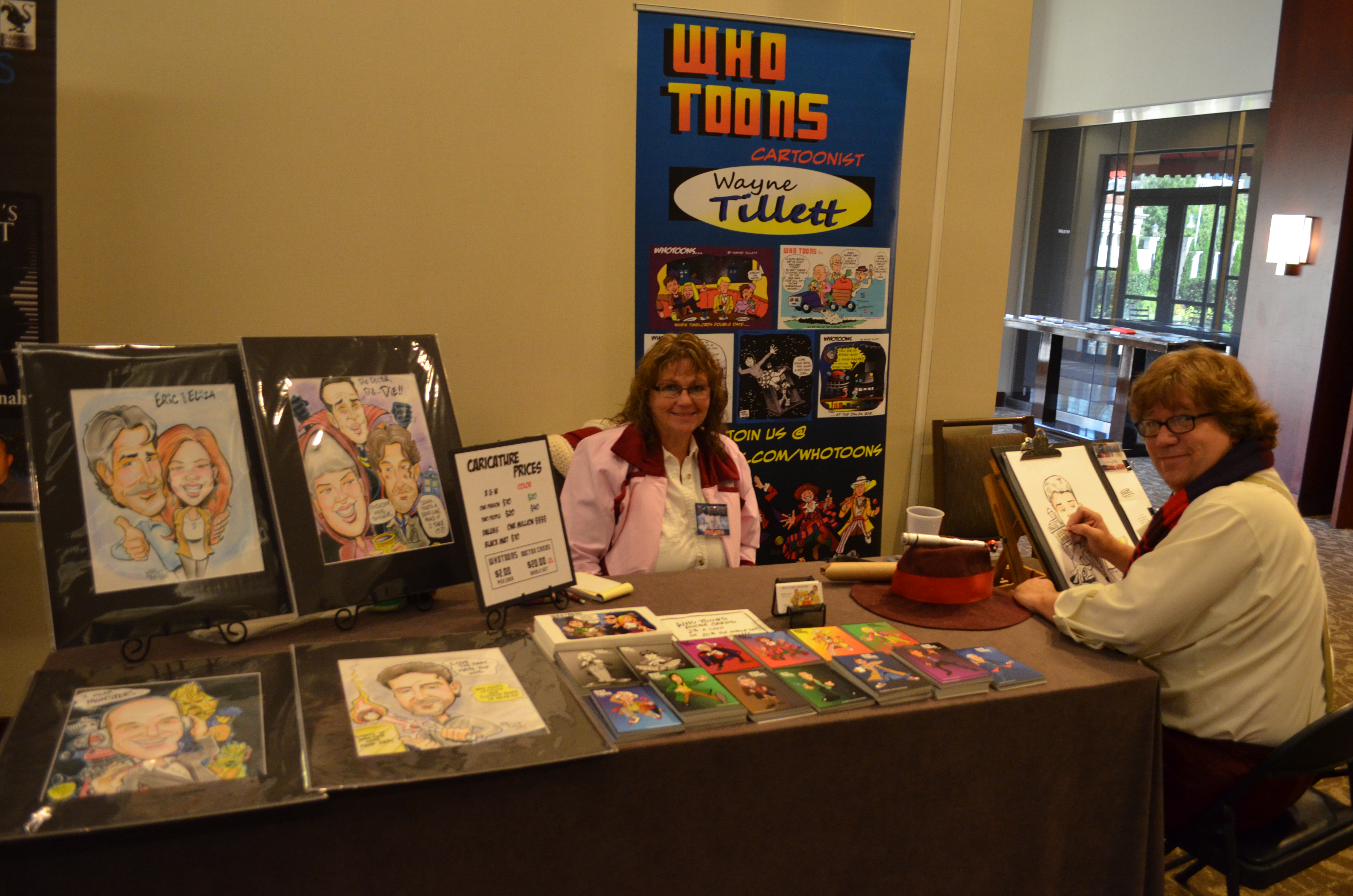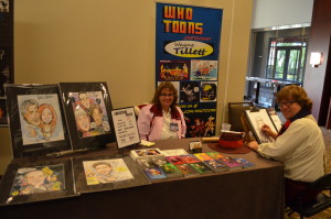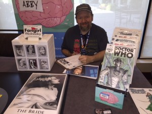 We had great table neighbors again this year. Two tables down from us at the entrance to Artists Alley was caricaturist Wayne Tillett and his wife Lisa. He stayed busy all weekend, and when he wasn’t drawing he was getting his picture taken as the 4th and 6th Doctors. Oh, and apparently we have a few mutual friends!