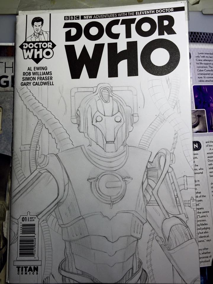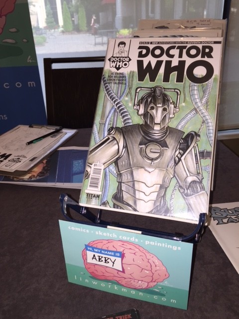 I took some new sketch cards and sketchcovers, including a new Cyberman cover. Folks are still having a hard time comprehending just what exactly sketchcards and sketchcovers are.