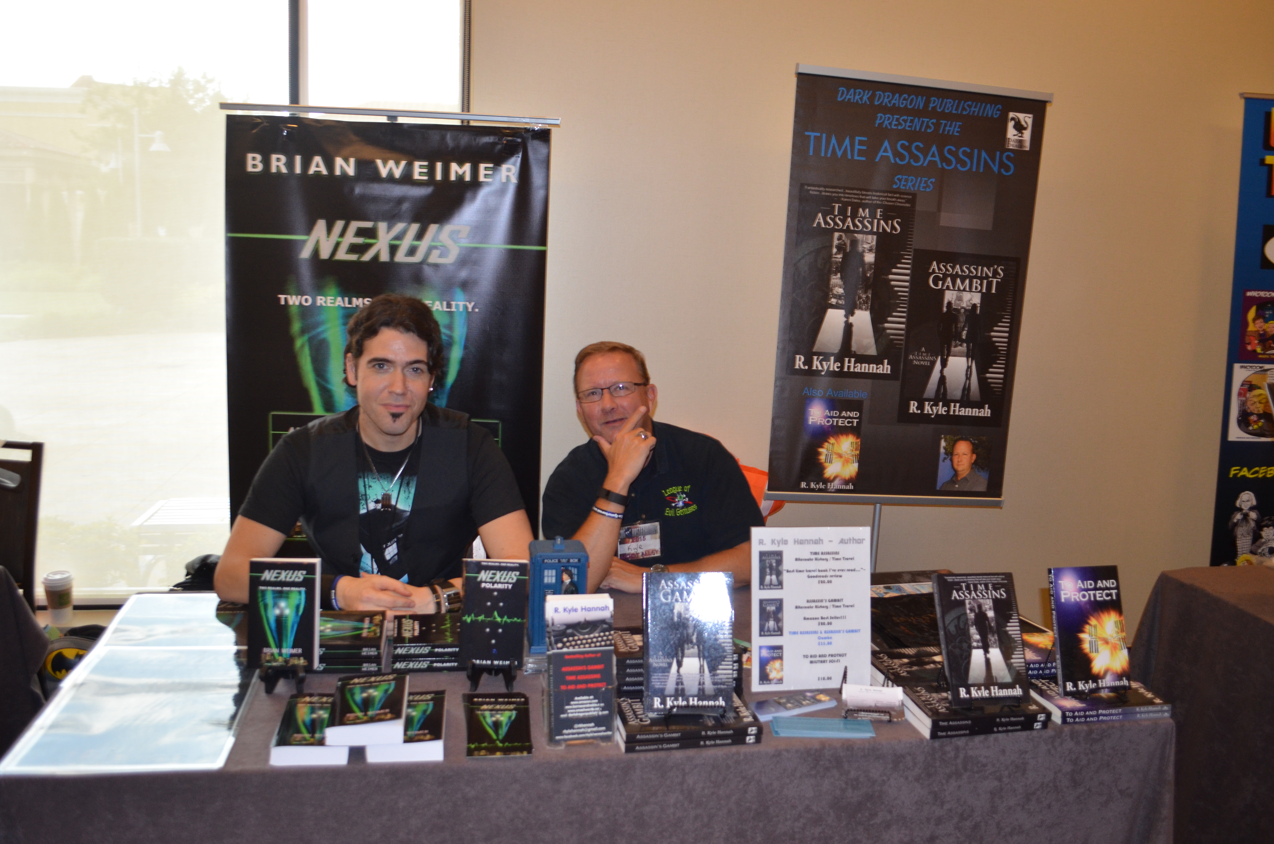 Between Wayne and Lisa’s table and ours were writers Brian Weimer and R. Kyle Hannah. I was shocked and impressed when I witnessed Kyle sell one of his time travel/history books to not only one- but to TWO different 12 year old kids! Nice salesmanship. Who knew kids still buy books..?!!