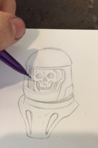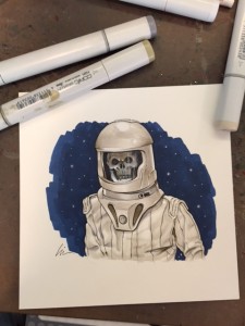 Sunday I started on a small 6″x6″ Vashta Nerada sketch, but had to be careful of the shadows..! I like working this size- it’s smaller than my usual 9″x12″ or 11″x14″ marker illustrations, but not as small as a sketchcard. The Bristol pad fits easily in my backpack, too.