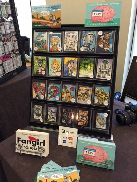 This year we were set up directly across from the viewing room and main panel room where the celebrity guests’ Q&A took place. We had great crowds- especially Saturday. You could definitely tell when the panels let out!