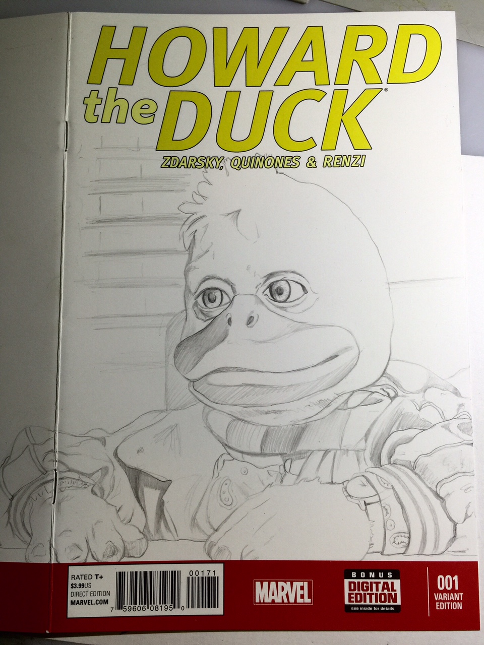 Today I felt good enough to actually sit down a do a bit of drawing. Really sucked being home and not being able to. Have been wanting to draw on one of my blank “Howard the Duck” sketchcovers, so I thought I’d take a break from some of my recent “Batman ’66” and “Star Wars” ones to get ducky with it!