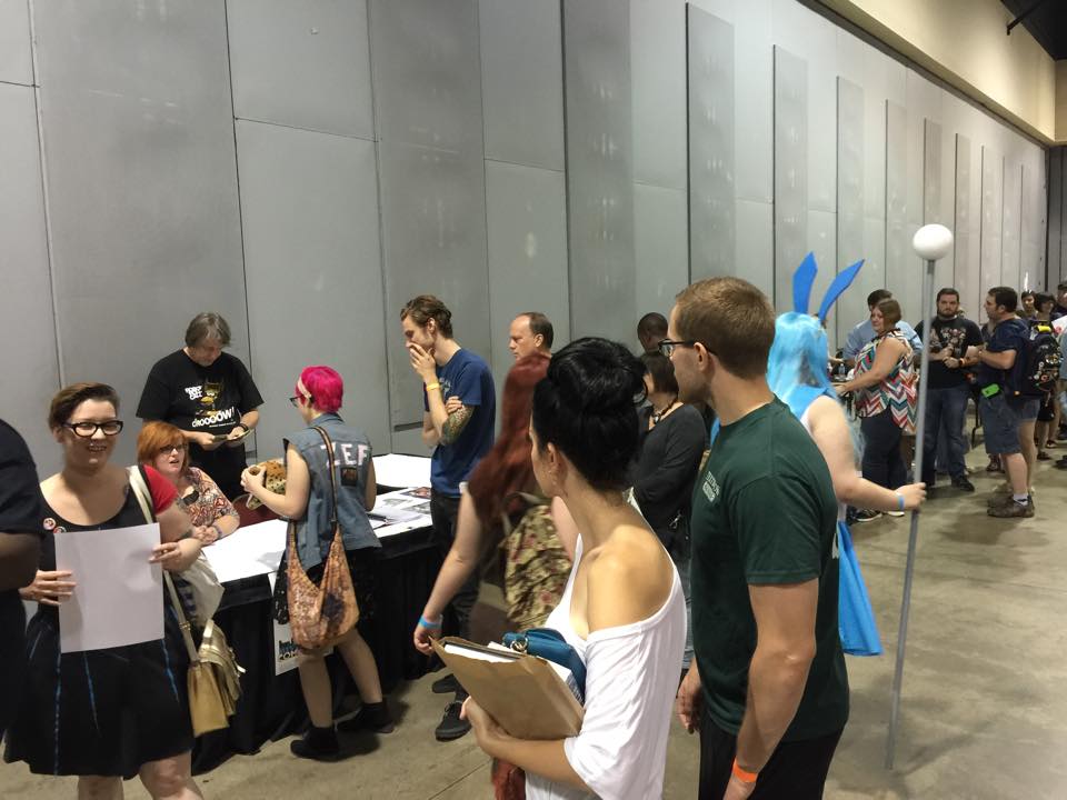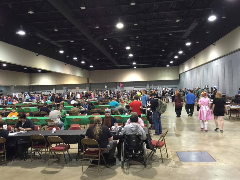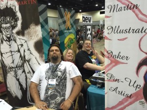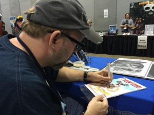 We had a great space again this year in Artists Alley. We had a good bit of space behind us so we weren’t cramped like as some cons, and the A/C worked great. I was able to get some drawing done thanks to some decent lighting, too. Most event centers seem to have lighting “dead zones“, but this space had bright and even lighting.