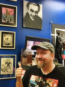 He asked me if I’d be at the Memphis Comic Expo later that year, and if so would I bring it- and I did. Sure enough Matthew showed up and took my (now his) Monsterpiece painting back to Arkansas with him. I had been wanting to stop by his shop, but never had time or was there when it was open while in Little Rock. Glad we made the time this trip. Good seeing both of these guys again and to know the painting has a good home and it is well loved.