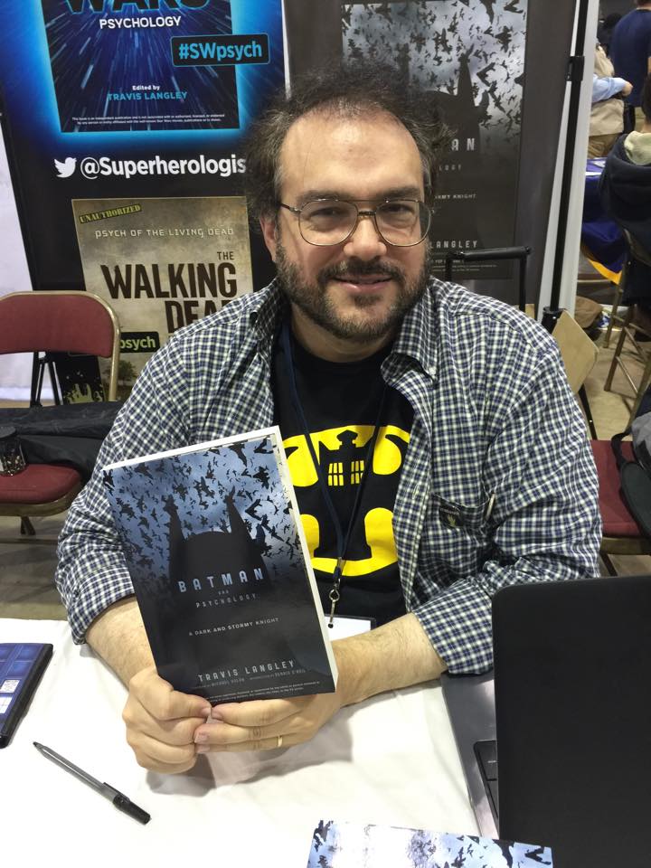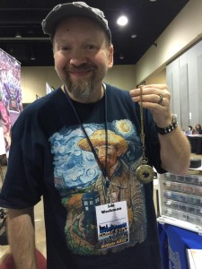But I didn’t just buy stuffs for my wife- I did get to do a little bit of shopping for me. I picked up an awesome Doctor Who/TARDIS pocket watch from Odd Duck Studios who were just a couple tables down from us. Going to use it as part of my War Doctor costume I’m putting together. Nicki and I had bought some custom wrist watches from them at previous shows in Little Rock and Memphis. Also picked up a signed copy of “Batman and Psychology: A Dark and Stormy Knight” from it’s author, Travis Langley. Saw the bat ears on his book and his Bat-TARDIS tee and had to stop and investigate. Was cool to meet him and talk a bit on one of my breaks from the table. He’s going to be working on a Doctor Who book next!