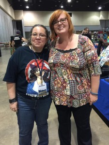 Like I said earlier, we had a great spot and were right across the way from Guest of Honor comic writer Gail Simone. We met Gail and her husband Scott at Mid-South Con in Memphis a few years back, and saw them again at the Superman Celebration in Metropolis. They’re great folks, and we were looking forward to seeing them at RCCE this year…and by the amount of people in her line all day there were lots of other folks happy having her at the show, too.